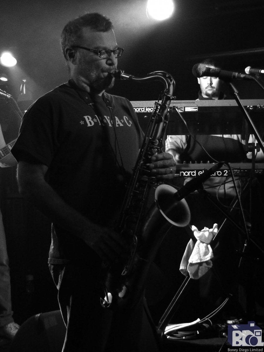 With no opening act, the fans went wild as Kung Fu took the stage, eager to feel the funk. The sound came blaring out of the speakers and the groove hit via highlights including “God Made Me Funky”, with its simple chorus which the grateful crowd sang back to the band. Somerville blasted his horn with great enthusiasm that almost chipped the paint off the walls. It was a unique treat for the Red Square venue to have the Kung Fu lighting rigs that heightened the musical experience with the nonstop waves of bright neon. Guests were given the warning from the band, “Just because we stop playing, doesn’t mean we want to stop partying.” One of the best things about playing in the Upstate New York area for Kung Fu is the late night cut off time, usually much earlier in Connecticut.