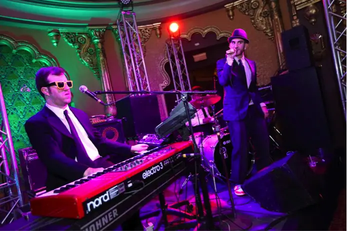 The Landmark Theater in Syracuse was the place to be to ring in 2014. Sophistafunk hosted 40 Below’s B(e)LOW-OUT New Year’s Eve Bash and tickets were sold out almost as soon as the show was announced. Everyone in attendance was dressed to the nines for the classiest party in the city that included an open bar, VIP lounge with private DJ, hors d’oeuvres, photo booth, and a silent auction with items from local vendors. Sophistafunk’s keyboarder Adam Gold started the party as DJ, playing tunes ranging from new hip-hop to some old funk and soul standards.