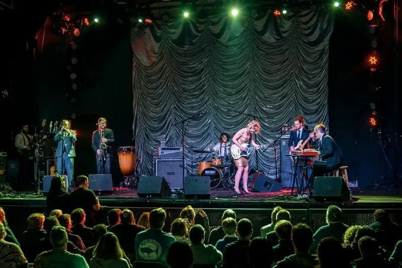 Samantha Fish has built a reputation as a popular festival act touring for nearly a decade as a blues trio, with a large slice of cigar-box slide guitar playing of her own. Her latest album and her latest touring band are a decided sonic shift from many of her previous recordings and performances, more roots rock than blues. That may have been unexpected for some attendees anticipating only her older repertoire. Fortunately, Fish’s guitar skills, vocals, and the dense layers of sound that her five piece backing band added were enthusiastically received by the vast majority. Her songs had elements of soul, gospel, country, and Americana, and she was sure to show off her guitar chops on the more blues-tinged numbers, as well as on a roaring cover of the Rolling Stones’ “Heartbreaker.” The variety of styles and sounds kept Fish’s guitar tech busy, frequently changing between an offset Telecaster, Fender Jaguar, Gibson SG, Taylor acoustic, and a gorgeous custom Delaney guitar, before making her way to a cigar box guitar for a second encore.