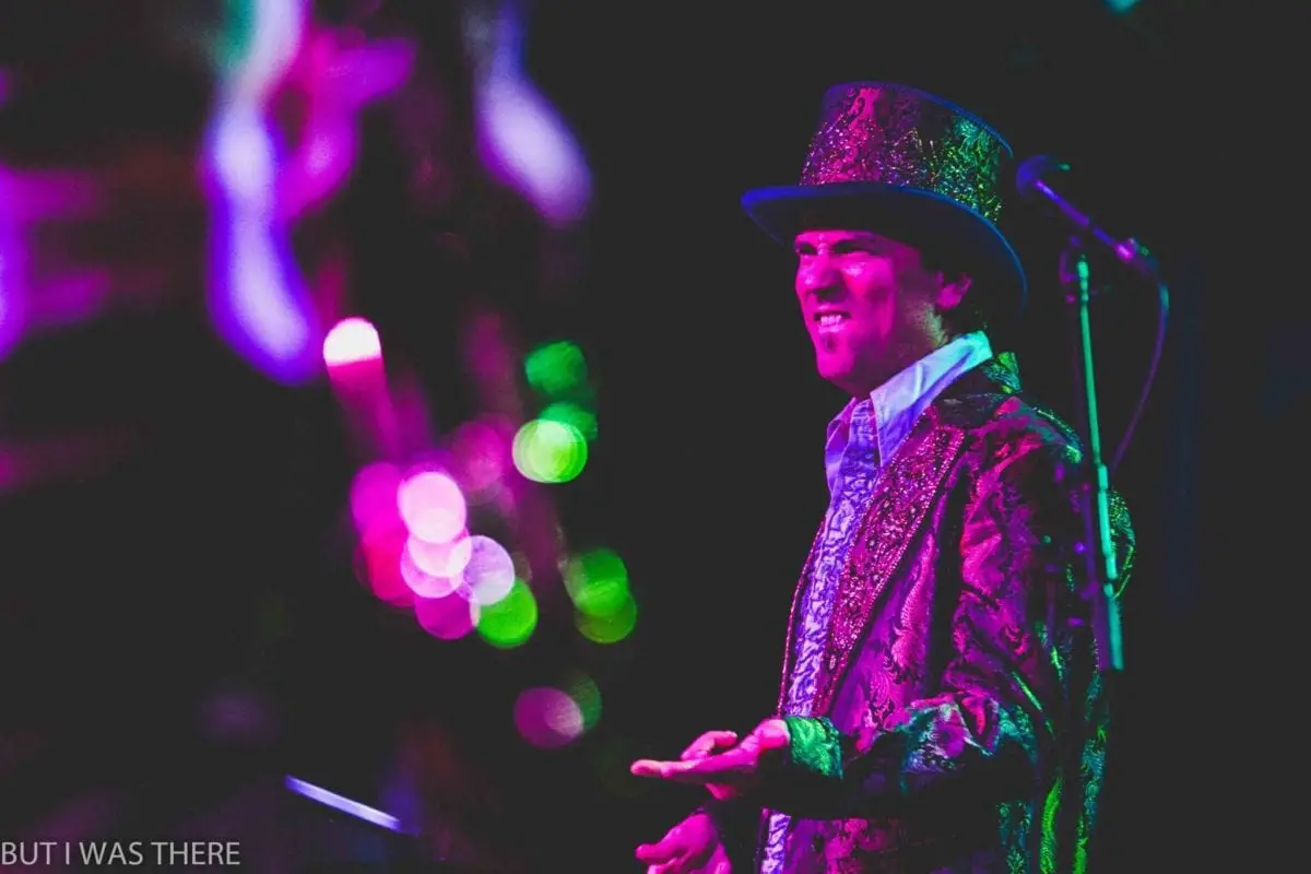 Decked out in a glittery purple conductor’s jacket and top hat, Butler, with hand motions, vocal cues, a white board and an iPad, directed the musicians through completely made-on-the-spot compositions across two sets for over 2 hours Friday night. The only time this music will ever get played was on that night and the only people to hear it were present then and there.
