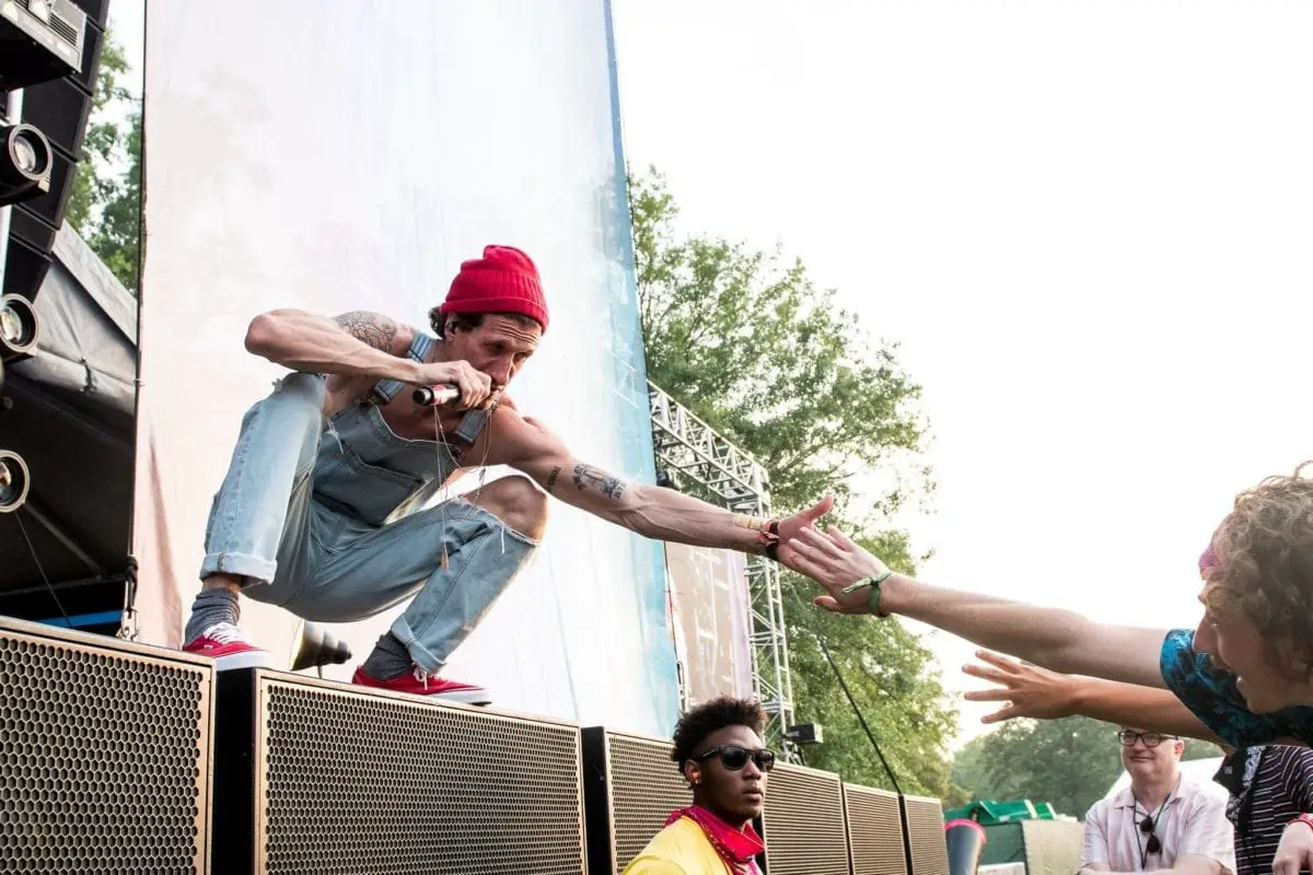 With nearly 90 degree heat, we needed a wakeup call. “Y’all ready to Rock n’ Roll?” David Shaw of The Revivalists screamed across Which Stage. Saxophonist Rob Ingraham, was strapped into a 4-point harness, twirling his sax and jumping across stage.The guitar stacks followed suit. As the band took on “Wish I Knew You” and “It Was A Sin” the wood began to bow beneath their feet like a trampoline. Michael Girardot bounced his feet in the air crashing into his keyboards, as the whole rig tipped back into one of the two dueling drum-sets. Everything was ready to come down. But it didn’t.