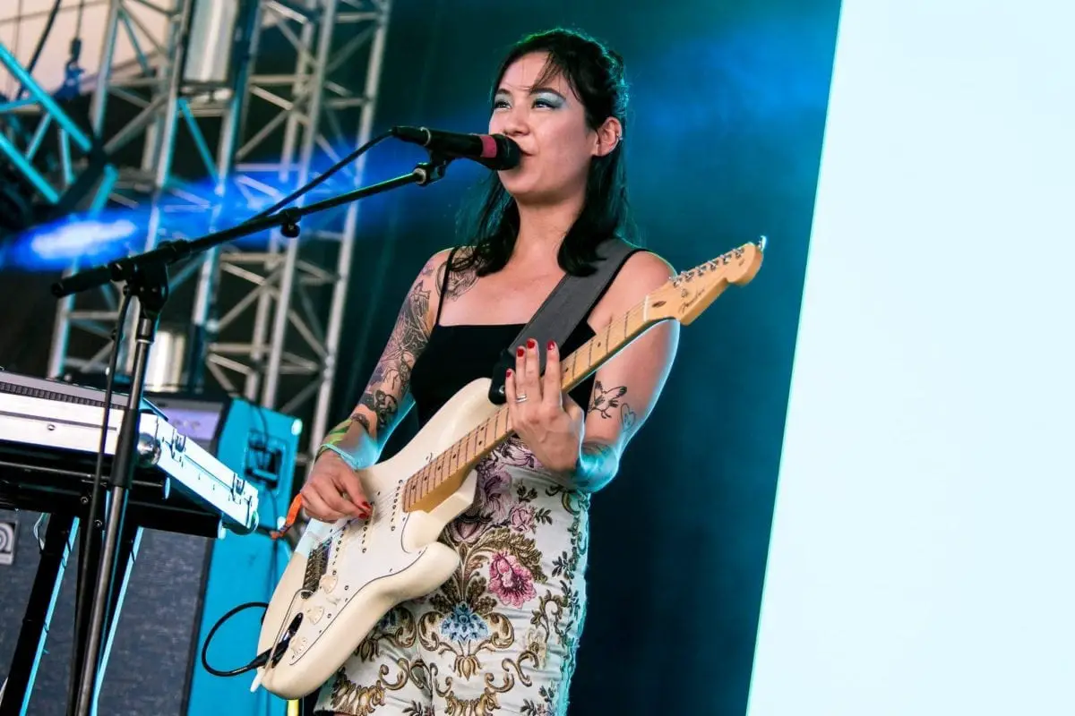 Iowa’s Lissie, continued at That Tent with the title track of their forthcoming album Castles, featuring an all female front with bassist Megan Mahoney and guitarist Toni Lindgren. Swelling peaks and valleys made the set dynamic, heard in “Love Blows” and “Feels Good.” Lissie sang with heart and makes a vivid connection to the lyrics in real time with “Best Days.” The soulful singer was in control, engaging the crowd. The performance strayed away from the electronic record with Luke Anderson on acoustic drums.