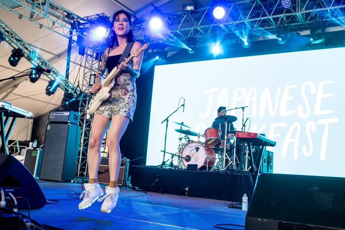 Nude mannequins stood on either side of the drums – headless, wearing ball caps. “Undies! Undies!,” lead singer, Julia Lauren Bullock screams. She pressed her lips to them and launches them back at the packed tent. “Yeah, that’s a big fucking pair of underwear.” The ambient keypads lingered in the Tennessee heat. Bullock, stretches the mic cable through her dirty blonde hair, back facing the crowd, dancing with it.