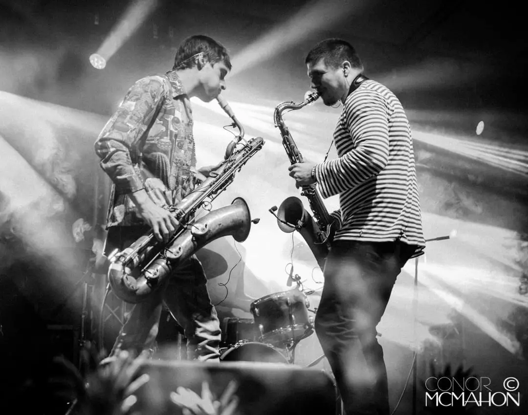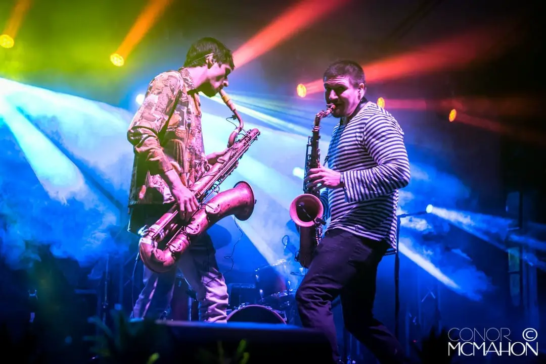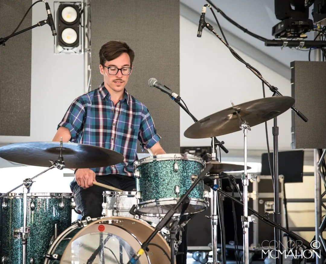 Moving from a lower listing on festival lineups to the opening headline for Disc Jam 2018, the bari sax, saxophone and drummer trio Moon Hooch took to the Main Stage at 8:45 pm following Aqueous’ valiant set. The environment shifted as the sun set, and the staccato pulsing of bari sax combined with crisp drumming patterns turned the long lawn of listeners into a club of dancers. The dissonant harmonies of “Tubes” was well-received by the audience and the traffic cone saxophone wail was both an alarming and endearing sound that made people want to move. The band threw in some surprises in their set, adding some playful synth to layer upon the existing space. Nevertheless, the driving drop of each beat was amplified over the crowd like a punch. Even if you kept your cool on the outside, you could feel the beat inside your body.