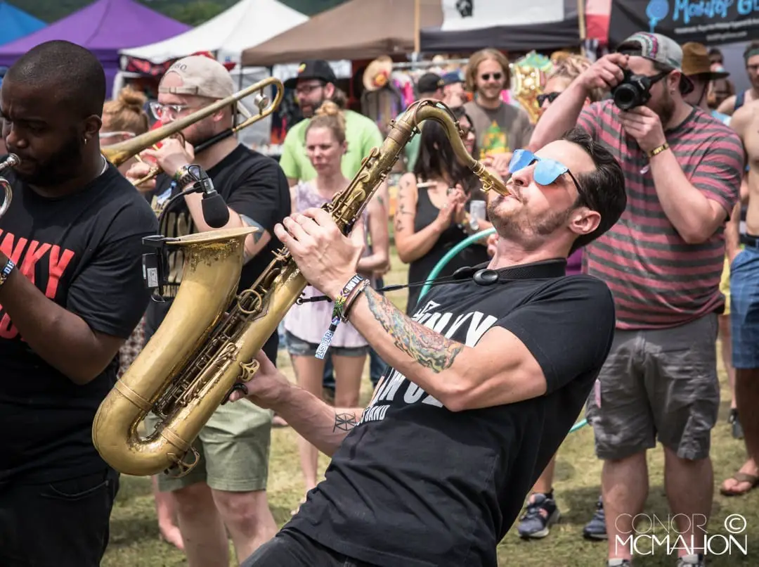 Easing into the afternoon was the set of Formula 5, over at the Tent Stage at 3:30 pm. Delivering impeccable improvisation and melodic mastery, the Albany-based quartet played a mastered mix of stylistic interludes in the opener “Breaking Glass” along with the dance inducing in “Sad Bed,” from their 2017 album All Points North. To make the set even sweeter, Rob Compa was invited on stage with the band to close out the set with a cover of “Swamp Music” from Lynyrd Skynyrd, which had everyone chanting swamp swamp swamp as a mighty chorus.