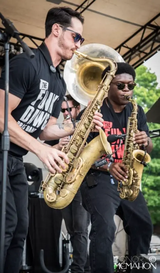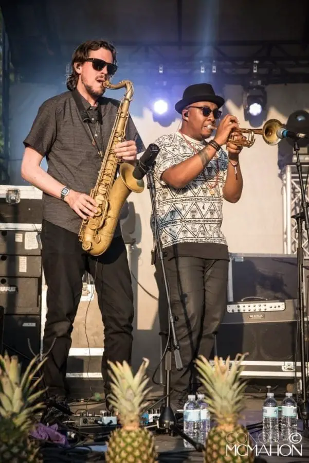 Connecticut-bred band Kung Fu took to the Main Stage at 6 pm to play their electro-funk fusion for the large crowd that gathered. They brought on a cohort of special guests, most notably the alto powerhouse Shira Elias from Turkuaz. To close out their set, the ensemble and Elias covered “We Are the Champions” which rang through the audience with all singing in unison. Kung Fu were not the only ensemble to feature great covers throughout the evening. Denver-based band The Motet made a profound entrance to the Main Stage at 7:15 pm, throwing in a cover of “I Get High On You” from Sly and the Family Stone. Following in the same funky fashion was their performance of “The Truth” off of their 2016 album Totem, along with a track “Keep On Don’t Stoppin” from their 2014 self-titled album. With a whirlwind of brass solos and dance breaks, the sun set on Disc Jam with everyone moving together, and at the best moment, singer Lyle Divinsky paid a special tribute to Prince, who would’ve turned 59 that day. In Prince’s honor, Turkuaz vocalist Shira Elias joined The Motet on stage for a special rendition of the Chaka Khan’s classic “I Feel For You” which Prince had covered numerous times. It was clear that Friday night was designed to bring the funkiest bands one after the other, and with Galactic closing out the Main Stage for the night and DJ Logic hosting a variety of musicians over at the Tent Stage, the funk would keep rolling into the morning hours.