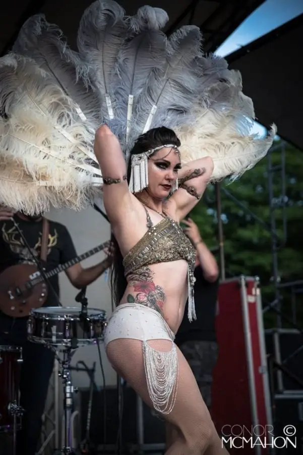 One of the most anticipated artists on the Sunday bill was Bella’s Bartok, which was made very apparent by the theatrically-dressed fans that found their place in front of the Main Stage at 4:45 pm. Jumping to the rhythm of “So Calm, Relaxed,” attendees and members of the band acted in a completely opposite fashion, spinning in circles and parading a brash frenzy. The band recently released the album Is Me That Monster? and many of the songs from their set were pulled from this, with rhythms too fast for any dancers to keep up with, though they tried.