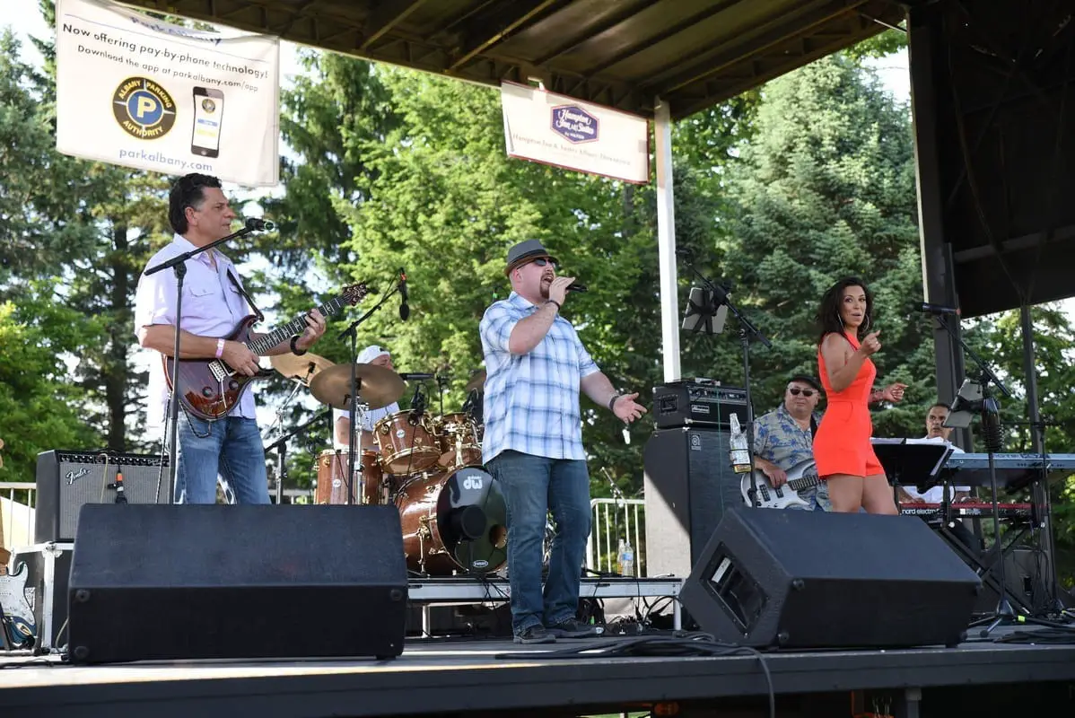 Sunday, June 17, was Albany’s annual DadFest held in Washington Park. This year’s event featured a custom and classic car show by Capital Car Shows, with cars parked all around the concert field. DadFest also featured food and art vendors, along with Sly Fox and the Hustlers, Hartley’s Encore and Grand Central Station. A very hot day in the park with great music introduced by Albany Mayor Kathy Sheehan also had activities such as free rock climbing wall and a bounce house and other activities for the kids.