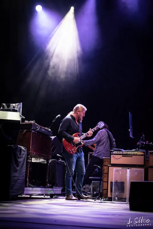 This regrettable beverage purchase was the only minor downfall of the night. Having never attended CMAC or a TTB show before, eager anticipation permeated the atmosphere. TTB’s wide appeal drew a charming audience of young and old faces. The bands mirrored this age spectrum, as Marcus King himself is newer to the scene at only 22. Yet his band was a fitting choice to open the night, as they eased fans in with their blues rock style garnished with King’s distinctive howling vocals for a heavier sound. He invited Derek Trucks to the stage for a tune which would be reciprocated later when TTB performed.
