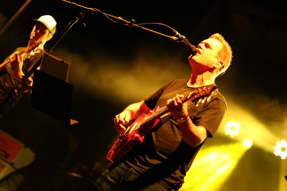 With the crowd loose and ready to jam, Pigeons Playing Ping Pong took the stage at 7:30 and impressed the crowd with a show that they played like it was their last. The upbeat funk-rockers explored different areas of jam music from ‘70’s disco-esque grooves to dark, gritty jams. The entire crowd grooved along as the non-stop set kept everyone dancing and on their toes for what they would play next. At the end of their set the crowd didn’t seem to want them to leave, as they didn’t want to either, and gave the band an ovation which was heard a town over.