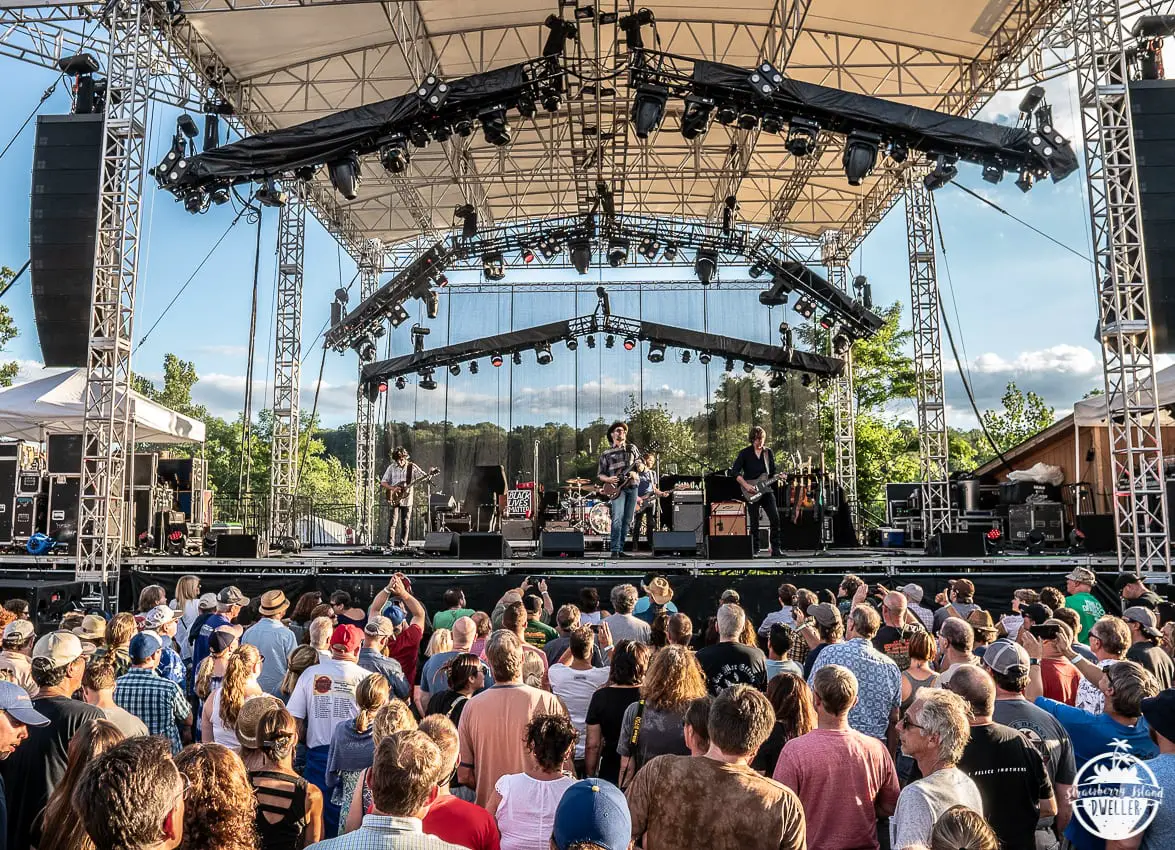 This disconnect was triggered before even setting foot in the venue, as finding parking became a scramble to get a spot before missing the opening band. The Artpark signs for additional parking seemed to be leading us farther and farther from the venue, so in a panic we parked in a side yard patrolled by a middle aged man who rolled up to our window on a BMX bike, and in exchange for $5 pointed at the grassy hills in front of us exclaiming, “walk ten minutes that way and you’ll see it.” With eager anticipation and only a smidge of skepticism we hightailed it through the hills, quickly being immersed in a sea of waving yellow grasses that surrounded the path in every direction. We were soon joined on the path by flocks of other concert goers en route to the show, which combined with the beautiful scenery helped put our frantic minds at ease. Although some venues provide VIP parking for media personnel, this parking adventure definitely made for a better story.