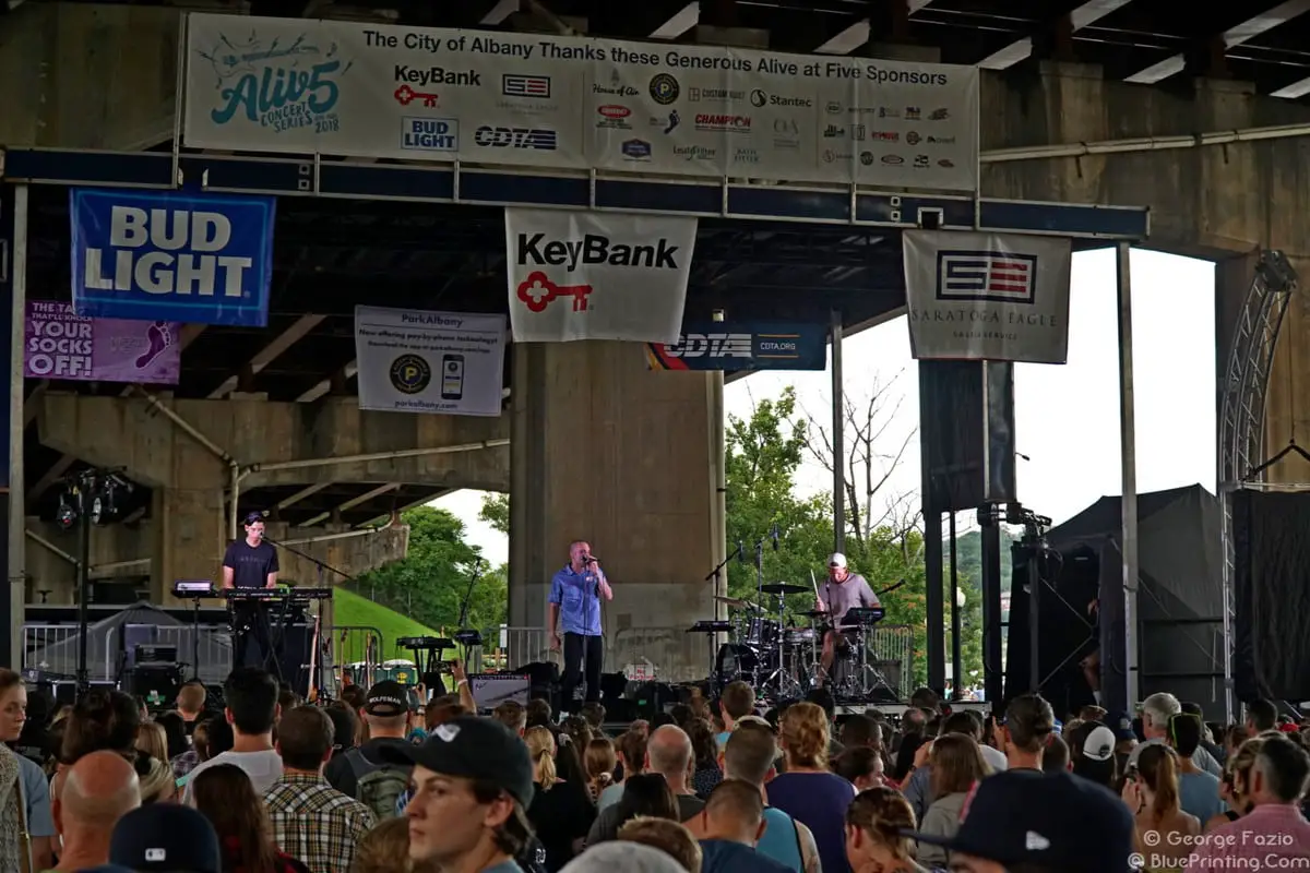 For the final installment of Albany’s Alive at Five summer concert series, the rain location at the Corning boat launch played host to local opener The Late Shift and Los Angeles based Indie band Sir Sly. Formed in 2012 by lead singer Landon Jacobs, Haydon Coplen and Jason Suwito, the group played a mix of alt-pop songs off their albums Don’t you worry, Honey and You Haunt me. For their encore, they played “Oh Mama,” a song Landon wrote about his mother who recently died of cancer. Sir Sly will be back in New York, performing at Warsaw in Brooklyn on October 20 with Joywave, and are also on the Austin City Limits Music Festival lineup.