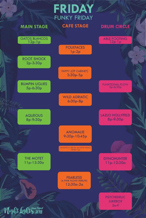 Check out the daily schedules above to plan out your Night Lights weekend. NYS Music will be releasing coverage of the fest afterwards, so check back with us for our thoughts on the experience.