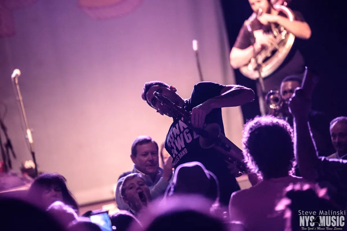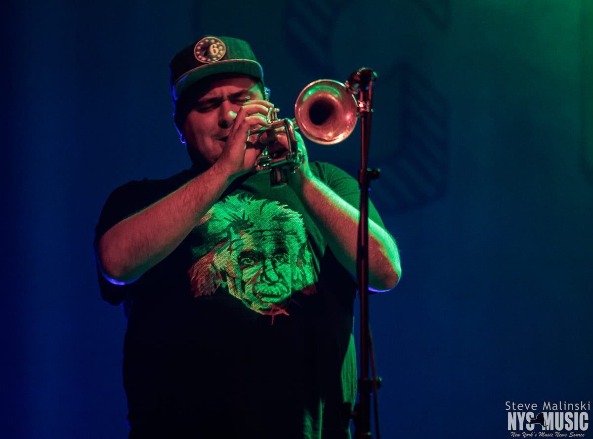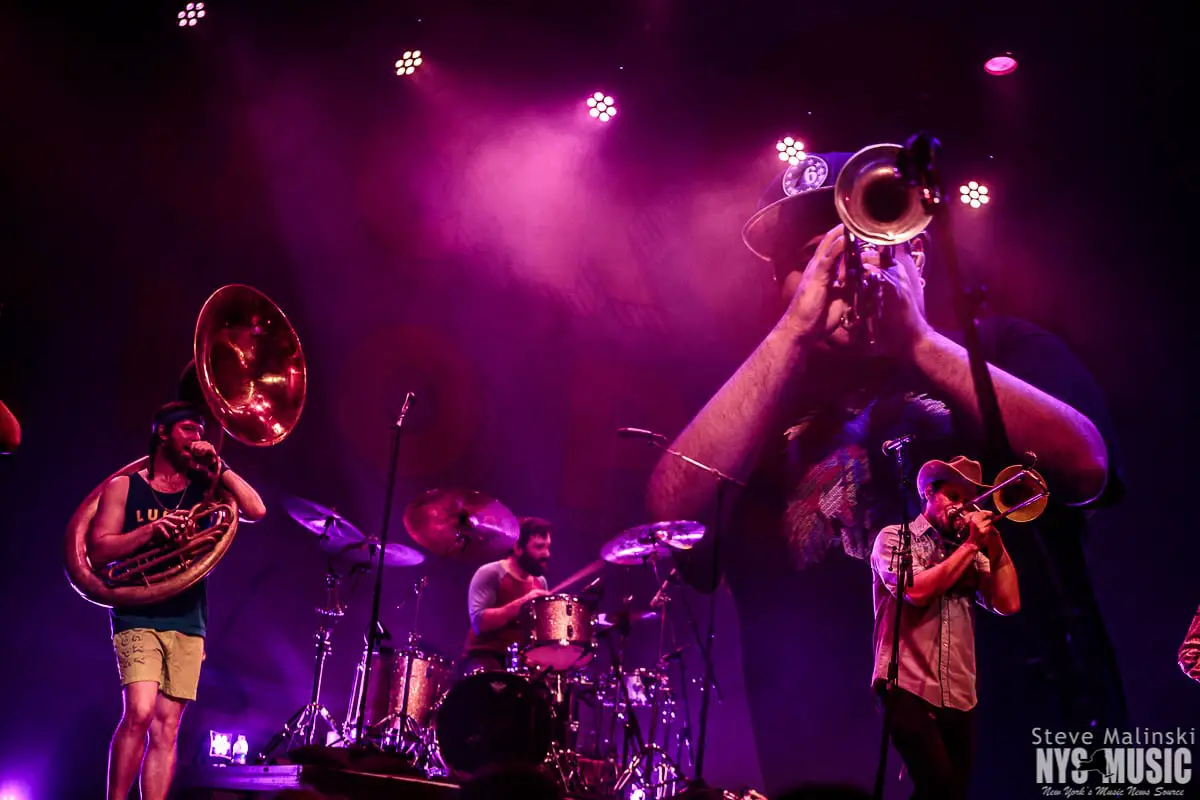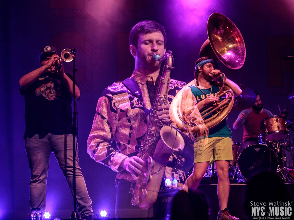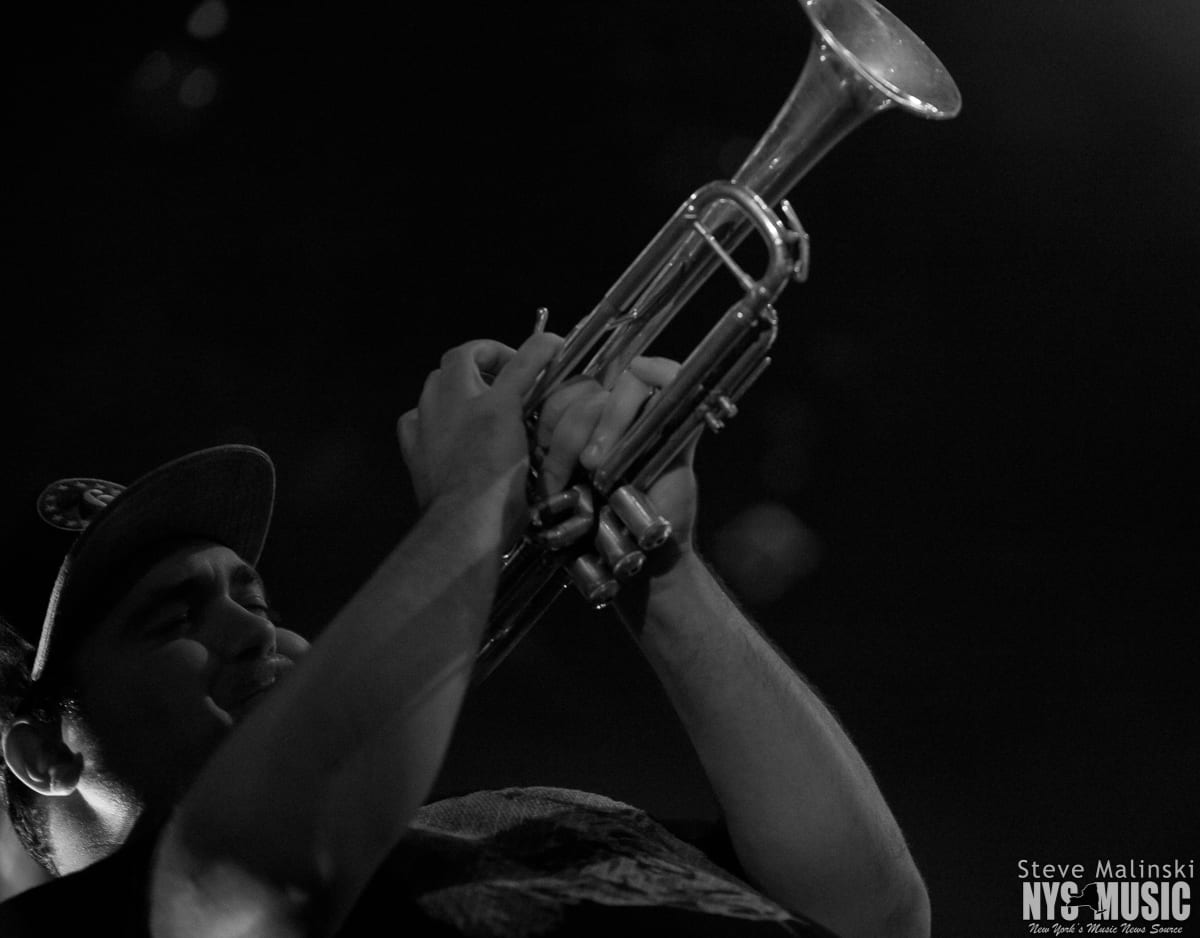 Lucky Chops has been growing in popularity since getting a bit of attention busking in the NYC subway stations, so much so that they’ve gone on to play at packed houses on European tours. Though om a Thursday night with a small crowd, the band played with the high level energy they consistently bring to the sold-out clubs shows of Brooklyn and the outdoor summer festivals.