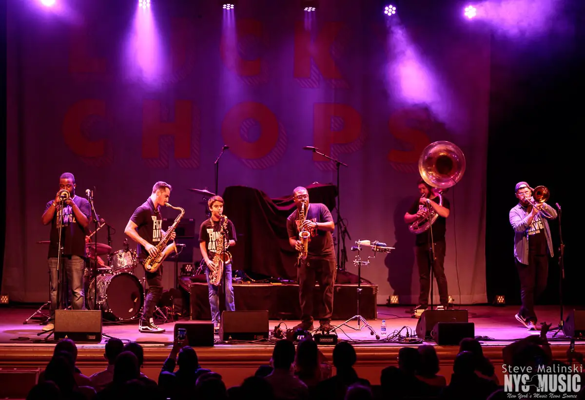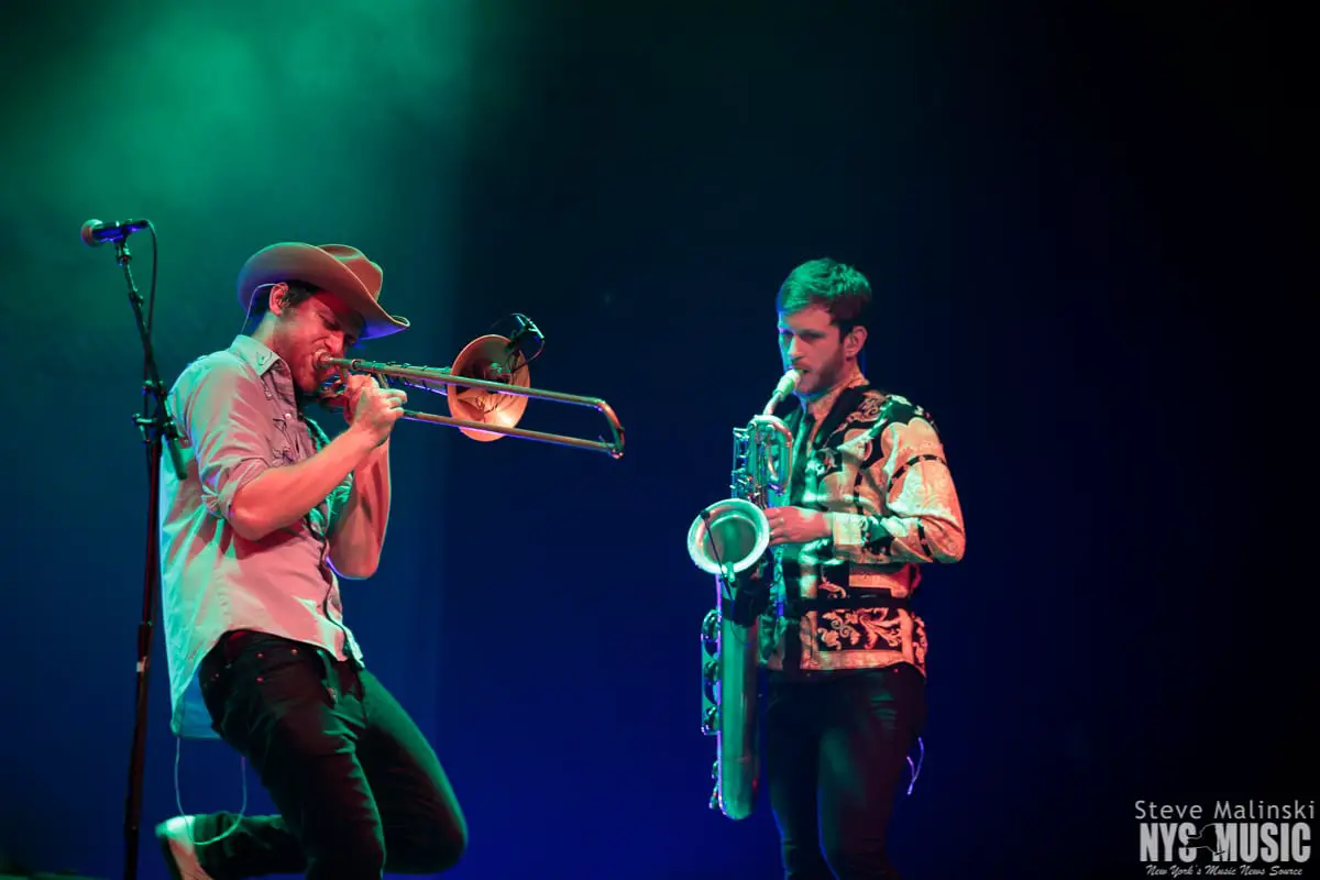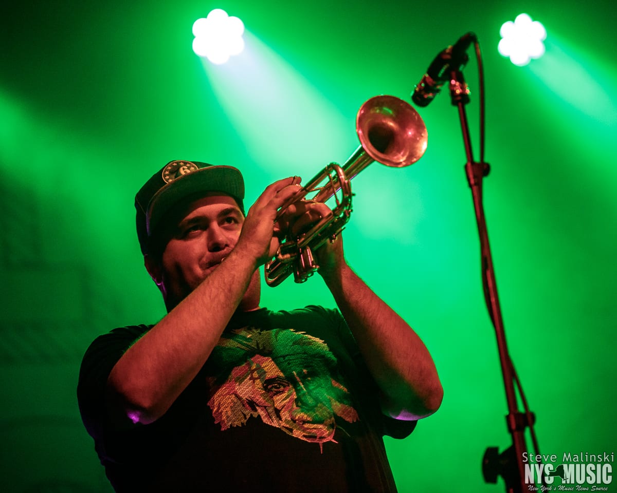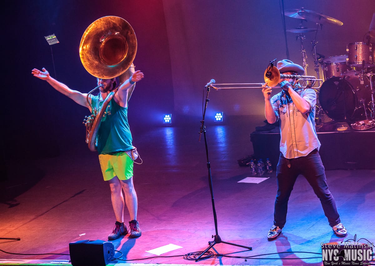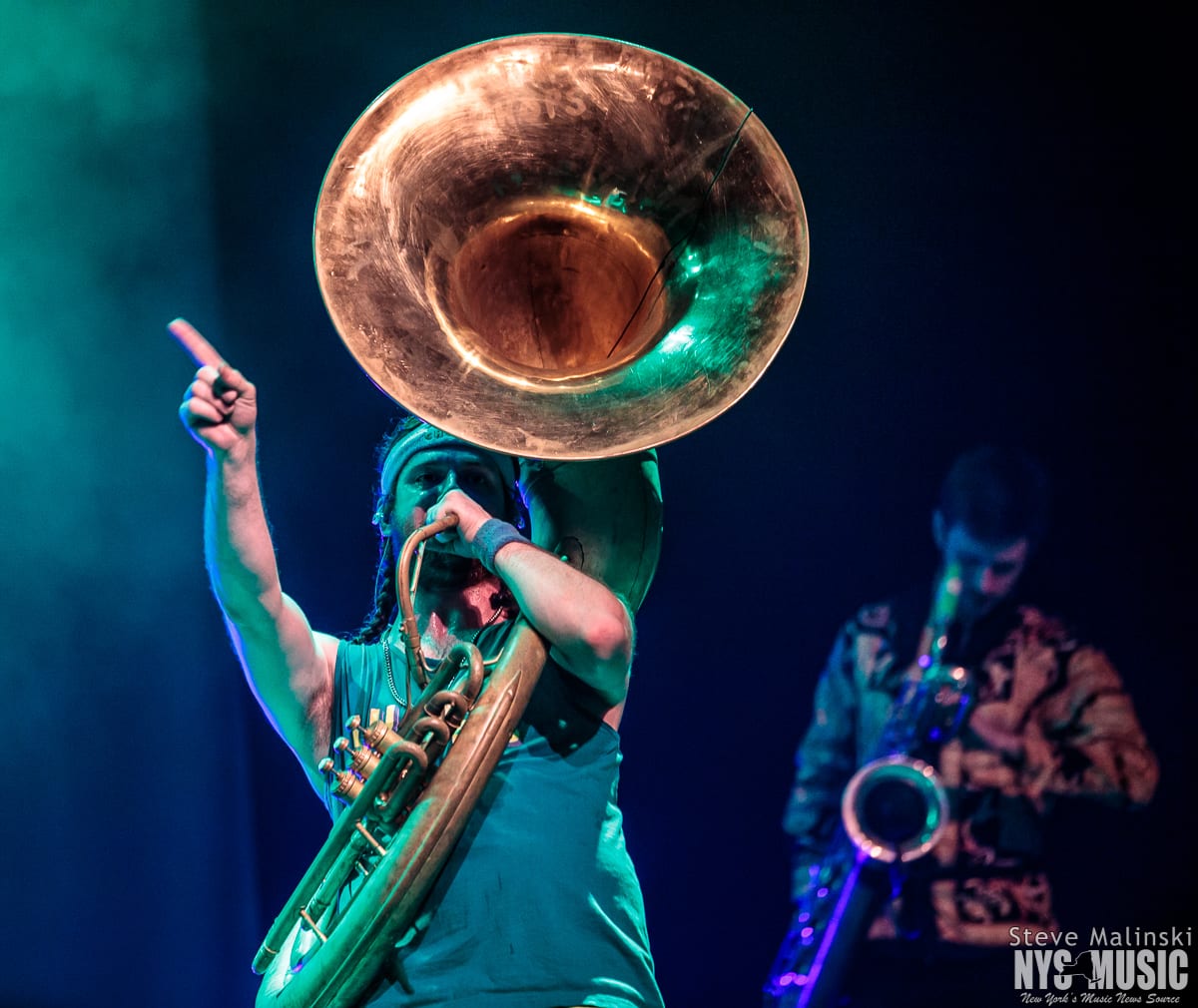 Lucky Chops has been growing in popularity since getting a bit of attention busking in the NYC subway stations, so much so that they’ve gone on to play at packed houses on European tours. Though om a Thursday night with a small crowd, the band played with the high level energy they consistently bring to the sold-out clubs shows of Brooklyn and the outdoor summer festivals.