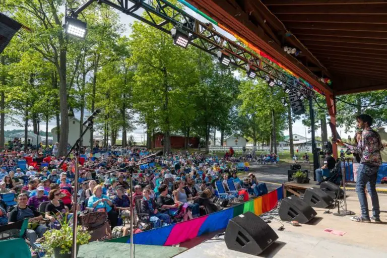 Intimate performances were held on three main stages, spread between the outdoor amphitheater and inside the fairground’s buildings. Musicians and festival goers gathered for more than 100 workshops over the weekend on topics ranging from dancing, open tuning, the bodhran (an Irish frame drum), and clawhammer banjo playing.