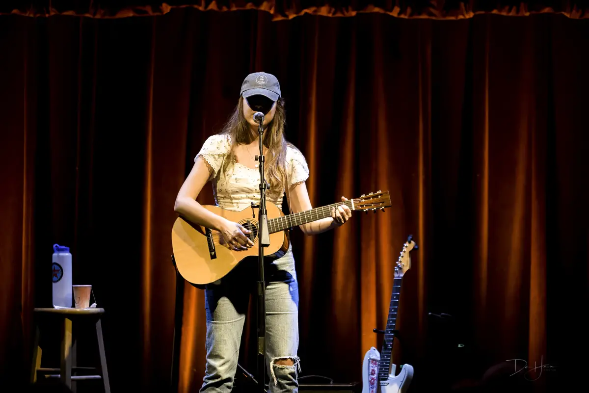 Ali McGuirk performed solo with only a couple of guitars as “friends.” Her partner in performance couldn’t make it. Even so, McGuirk is a compelling and entertaining presence on stage with just guitars accompanying her! Her soulful voice and a jazzy and sparse guitar playing style connect well with her audience.