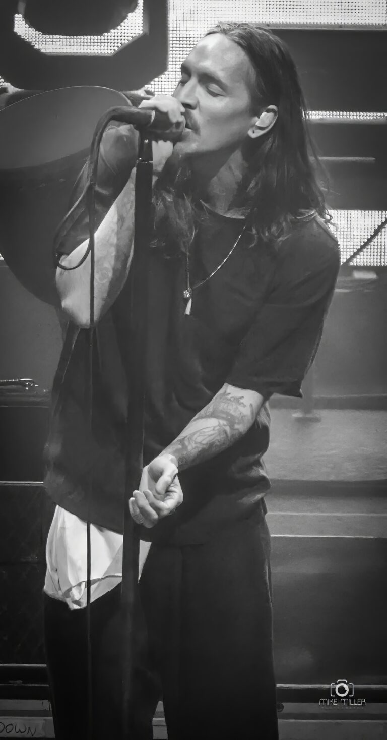As Incubus graced the stage, cheers echoed throughout the venue. However, as the band delved into their setlist, a discerning ear couldn’t help but notice moments where lead vocalist Brandon Boyd seemed to be struggling with pitch. While his distinctive voice remained captivating, occasional off-key notes hinted at monitor problems that might have marred his performance. Technical glitches can affect even the most seasoned of performers, and Boyd’s professionalism in powering through demonstrated his dedication to the fans.