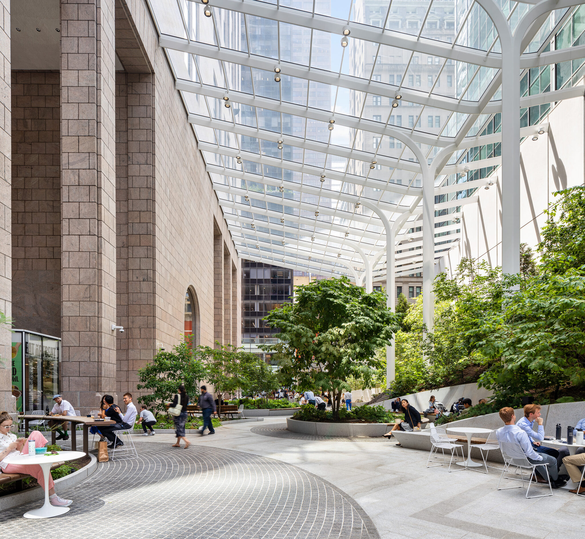The reawakened space, open year-round and features a heated hearth seating area, embraces nature as an amenity for building tenants, area residents, and visitors. New Yorkers find solace within the Garden among trees and plants and now live classical music.