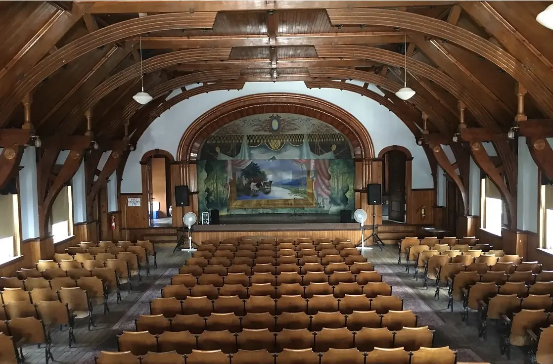 The town hall itself dates back to the late 1800s, where architects in nearby Ogdensburg, were tasked with rebuilding the institution after it had burned down in a fire. Over the years, the town hall has been home to a barbershop, a jail, a post-office and a roller-rink. The theater on the second floor originally hosted traveling troupes and medicine shows as well as local musicians and actors. It also served as a popular movie theater until the late 1950s.
