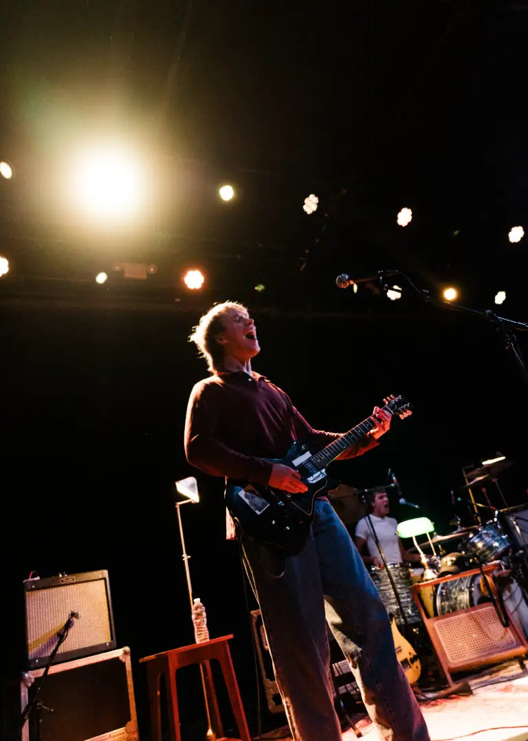 The setlist carried right into “Objection!” as spiraling florets of light bounced around the audience and the ceiling. Having already accompanied Wolfhard along the first leg of the Objections! tour, The Slaps and Wolfhard as a unit (in addition to Gep Repasky of Lunar Vacation on guitar and backing vocals!) were both impressively cohesive and idiosyncratically similar– the artists share the same sonic texture of something slightly warmed by time– almost akin to radio transmission– and the same minimal yet comedic narration from The Slaps’ opening set that seemingly carried into Wolfhard’s interactions with the crowd.