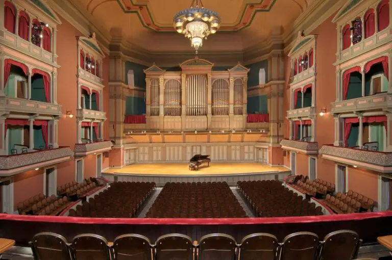 Acoustically, the venue is renowned for its shoebox design meaning its high ceilings, wooden seats, and parallel side walls are used to enhance sound reflection. This design also makes Troy Music Hall feel more intimate as the narrow width keeps audience members close to the performers.