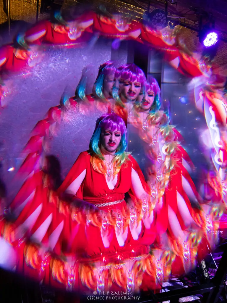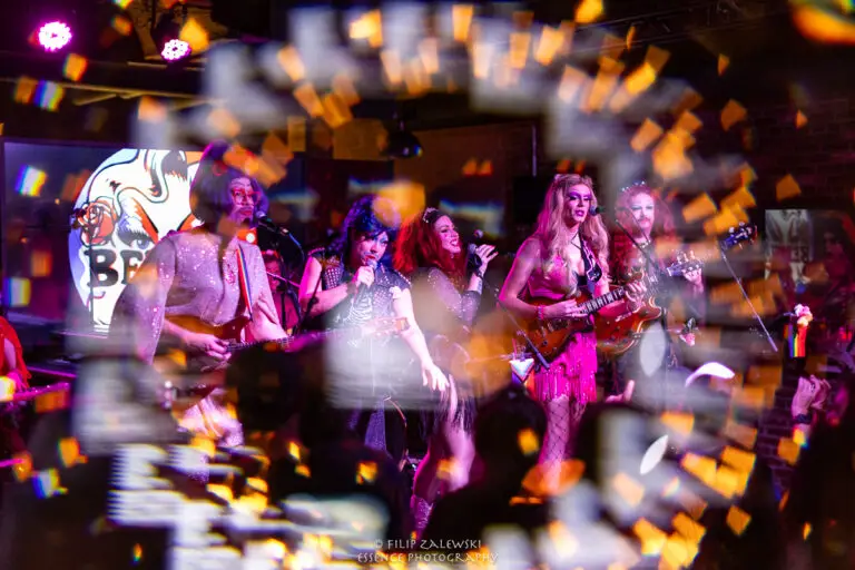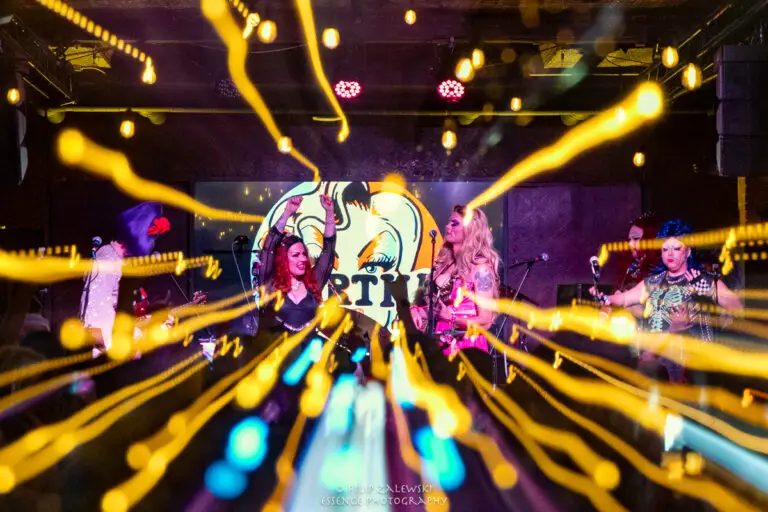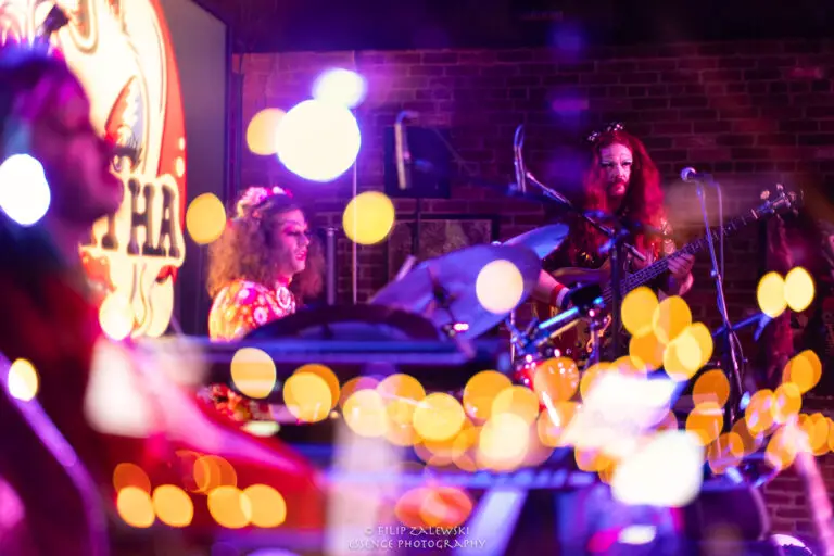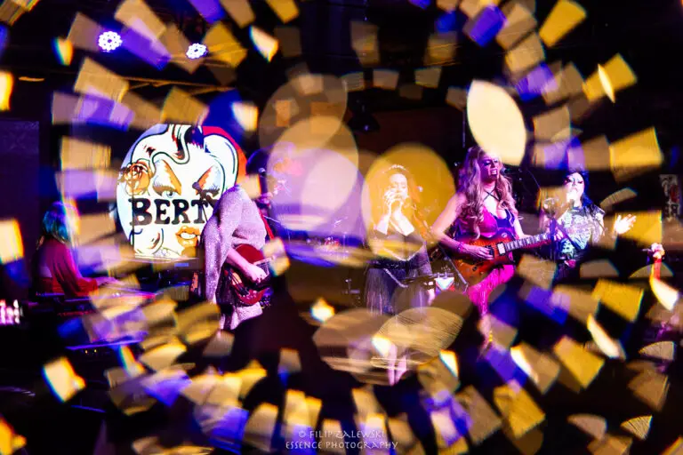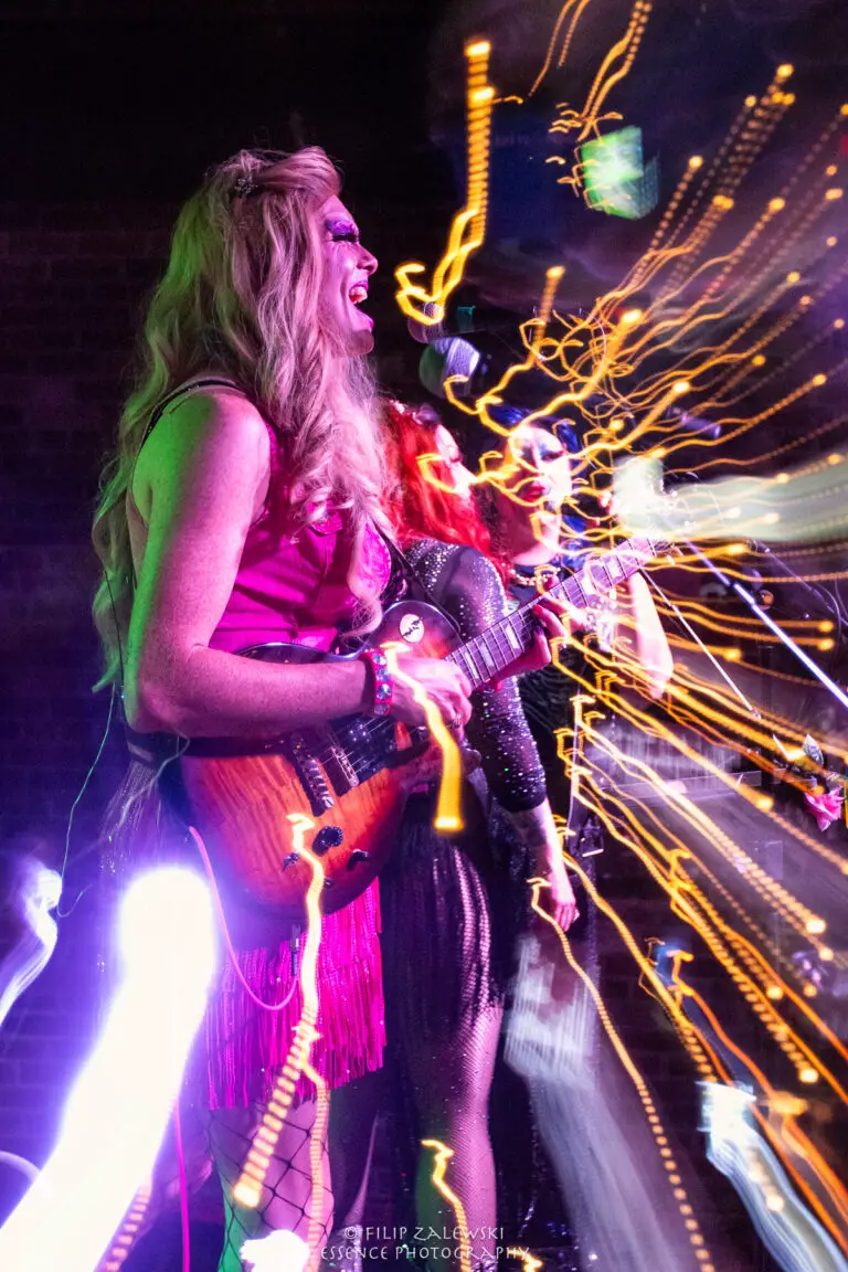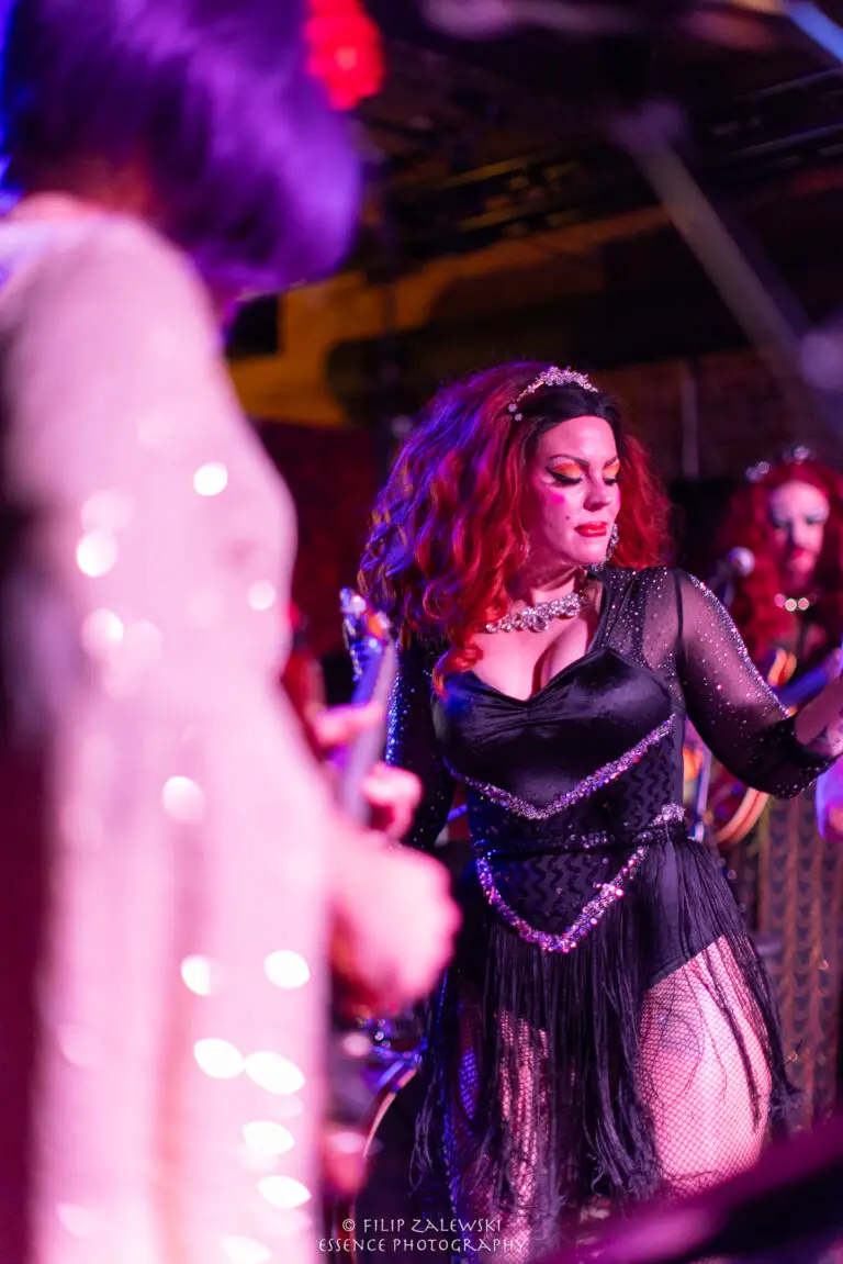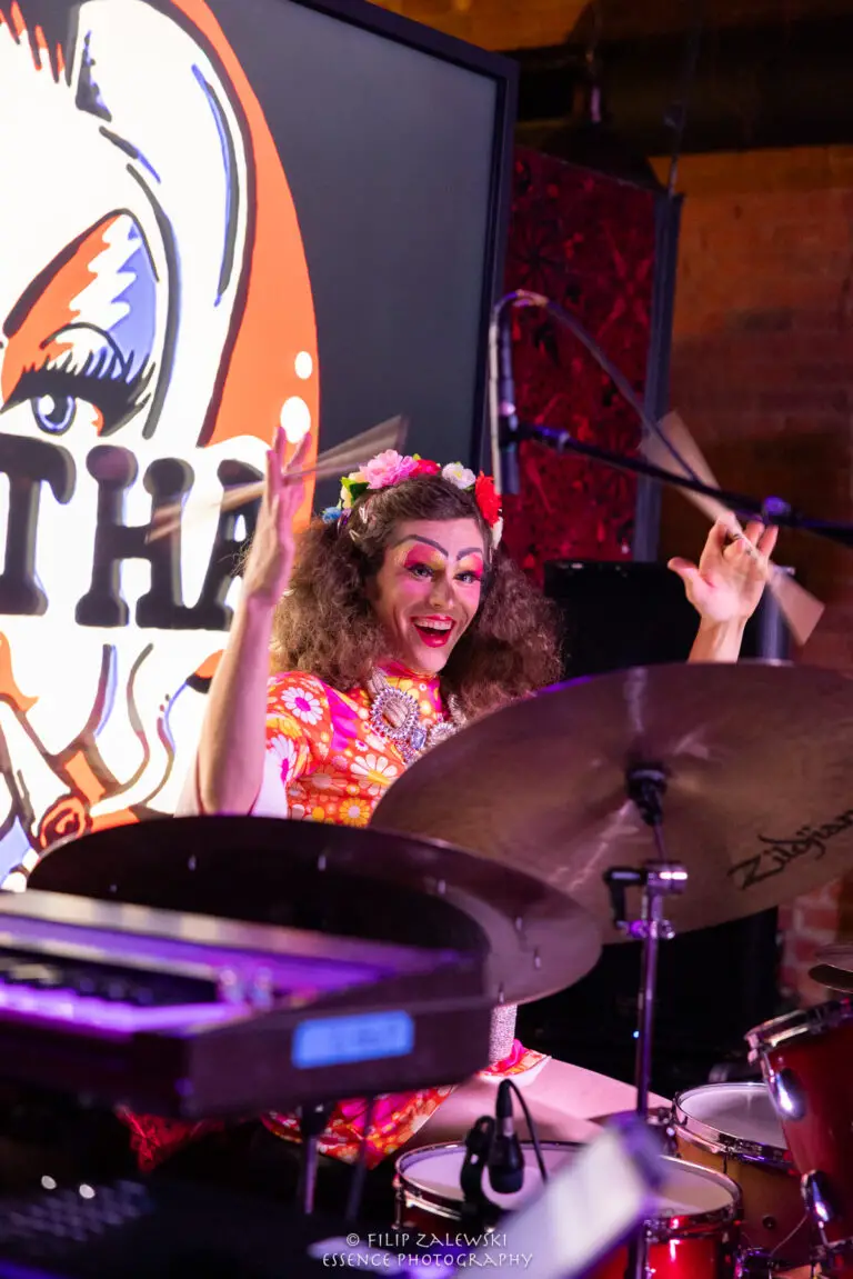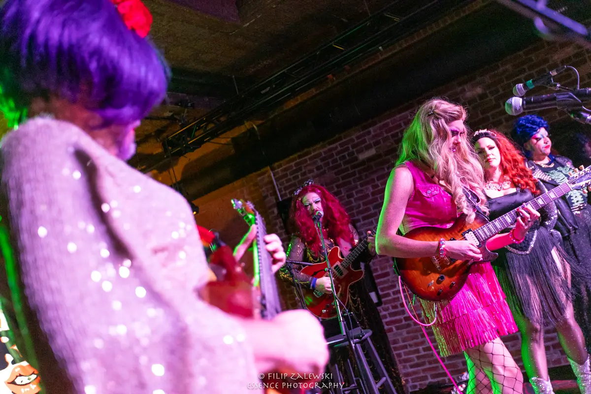 Known not only for their musicianship but also for their bold use of drag and costuming, the band turned the intimate room into a kaleidoscope of sound, color, and character.