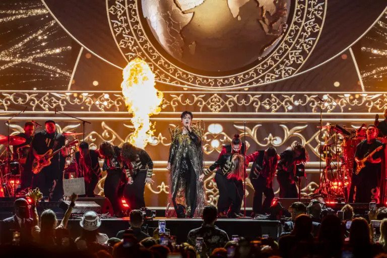 From the opening notes of “Golden,” the arena was captivated. Backed by a full orchestra and multimedia visuals, Dimash moved seamlessly between classical, pop, and cinematic arrangements—his voice effortlessly bridging octaves and languages.