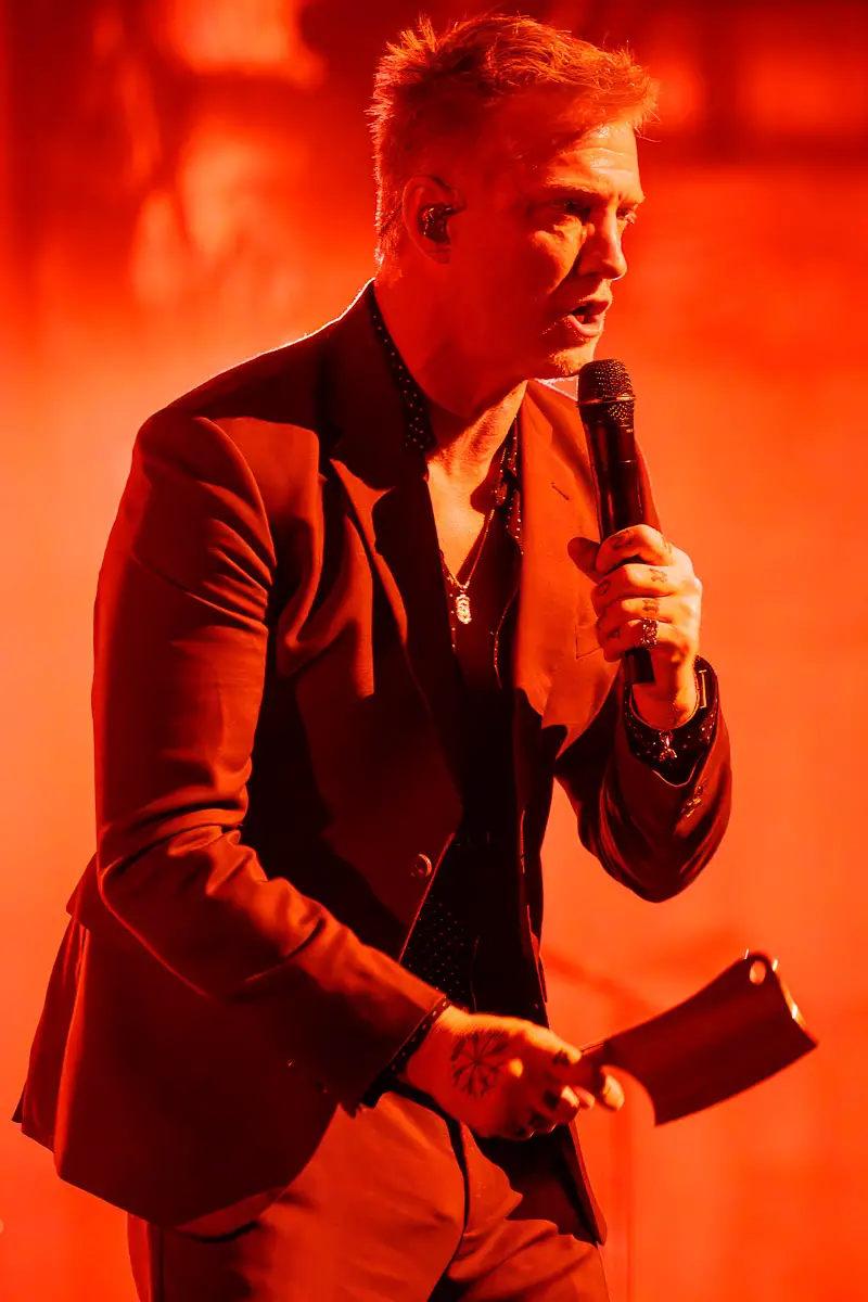 The second act was bathed in crimson light. Backed by a horn section, the band tore through a medley of “Someone’s in the Wolf,” “A Song for the Deaf,” and “Straight Jacket Fitting,” bridging decades of material with seamless force The set then slipped into “Mosquito Song,” the hidden track from Songs for the Deaf (2002), and closed with “Spinning in Daffodils,” Homme’s 2009 collaboration with John Paul Jones and Dave Grohl. The transitions felt cinematic – one long, feverish arc rather than a collection of songs.