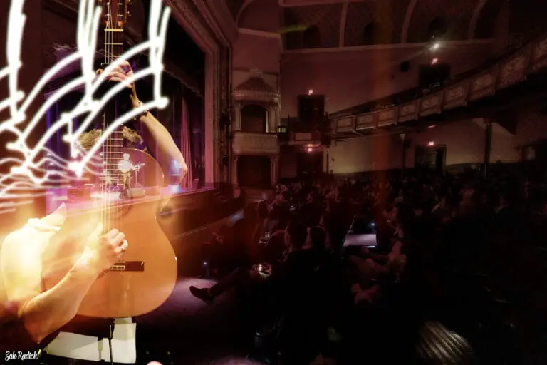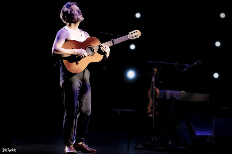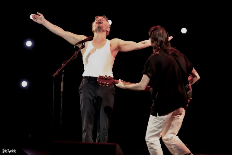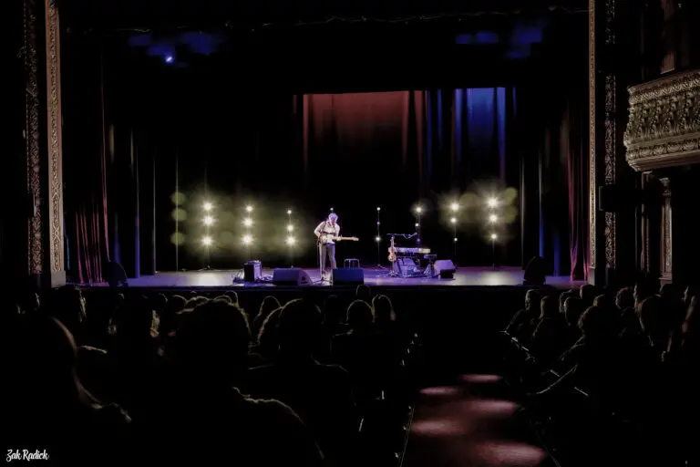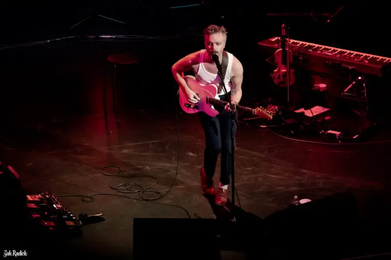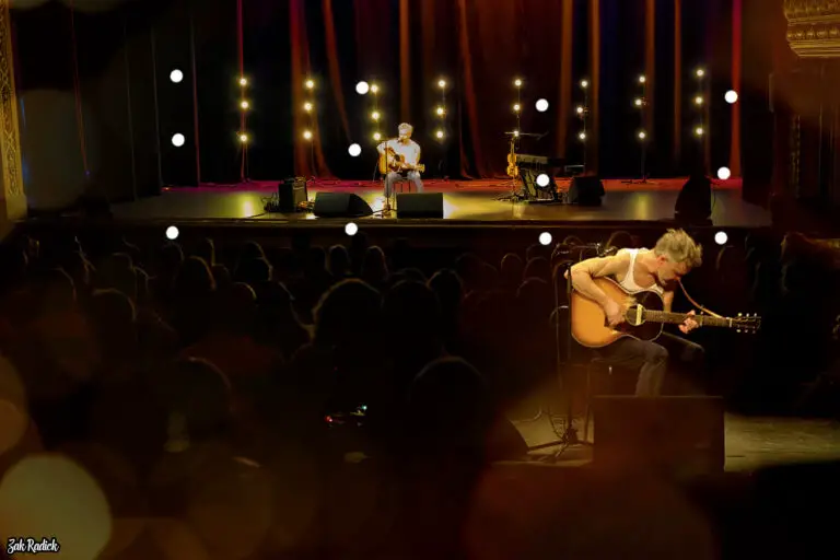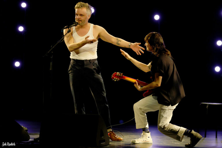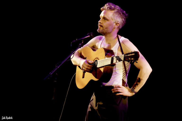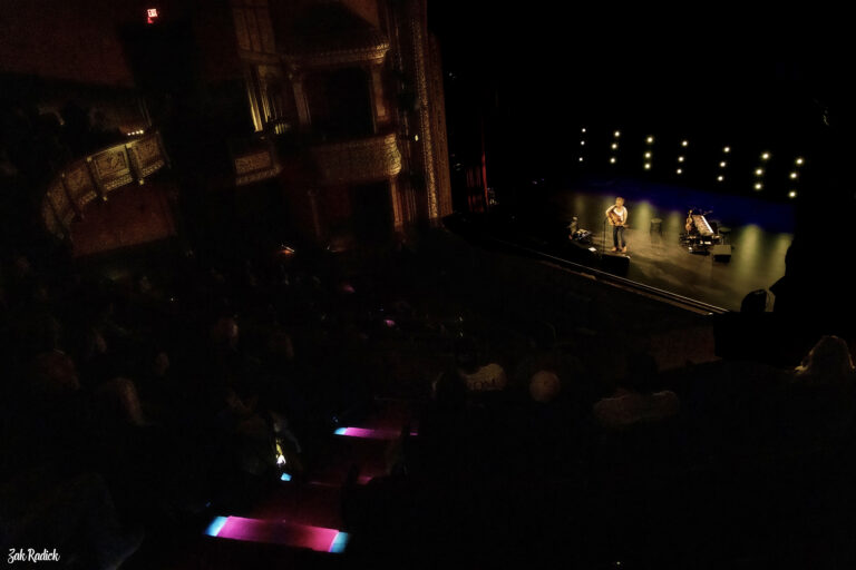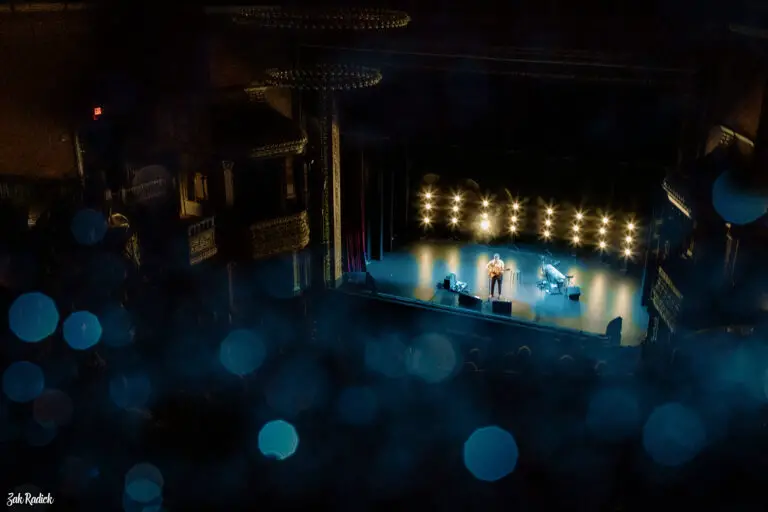 Songs like “A Lion’s Heart” and “Wind and Walls” felt both intimate and towering and were delivered with urgent vulnerability. His voice, gravel-laced and elemental, cut through the theater like a north wind. And somehow, amid the flurry of notes and movement, he made space for stillness, those long pauses between phrases where it felt like the room might collapse in on itself with his voice cracking just enough to remind you this was all real. During “Rainbows and Ridges” and “Like the Wheel,” the audience, sitting eyes wide and silent, seemed suspended in the same memory. Mine was of a hospital room. Others, I imagine, were of their own ghosts