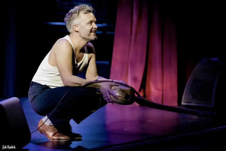 The tone was set gently by Anna Morsett, performing under the name The Still Tide. Her voice, a hush in the shape of light. brought the room to a reverent calm. With minimalist arrangements and lyrics that wandered into the corners of things we’re usually too afraid to say out loud, Morsett did more than kick off the show, she cracked it wide open. Her voice was soft but certain, threading delicate lines of longing and resilience through the stillness of the theatre. It was the kind of performance that didn’t ask for attention but earned it. The melancholy shimmer of her songs seemed to drift in the air like mist, setting the emotional temperature for the thought-provoking journey ahead.