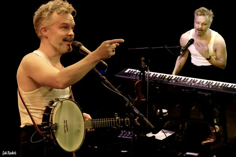 What followed was a 90-minute outpouring of spirit, sweat, and soul that defied the simplicity of its instrumentation. Matsson is a one-man storm. Switching instruments between nearly every song that he rotated like a magician pulling from a hat. There were banjos, 6 and 12-string electric guitars, mandolins, and even a piano. The Tallest Man on Earth took the stage not to perform at us, but with us and with everything he had.