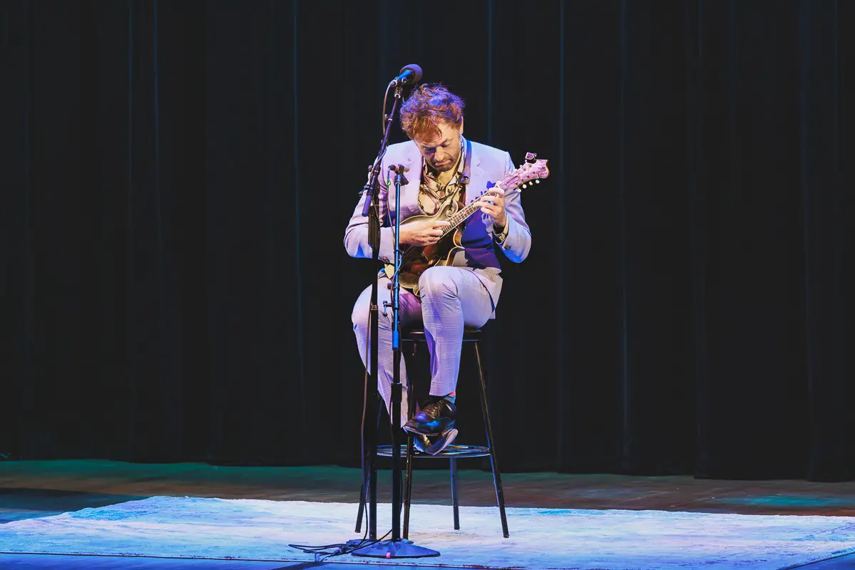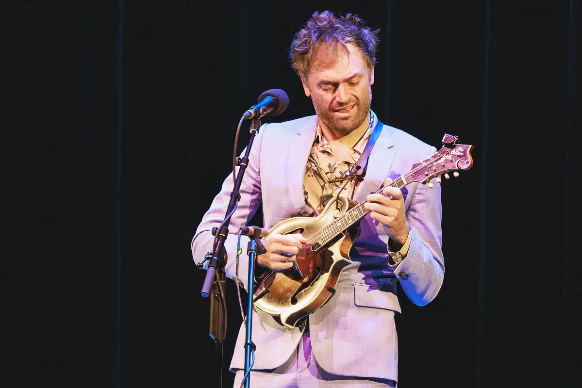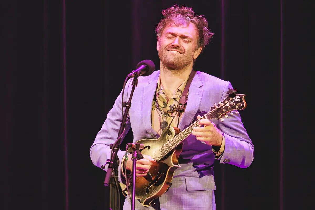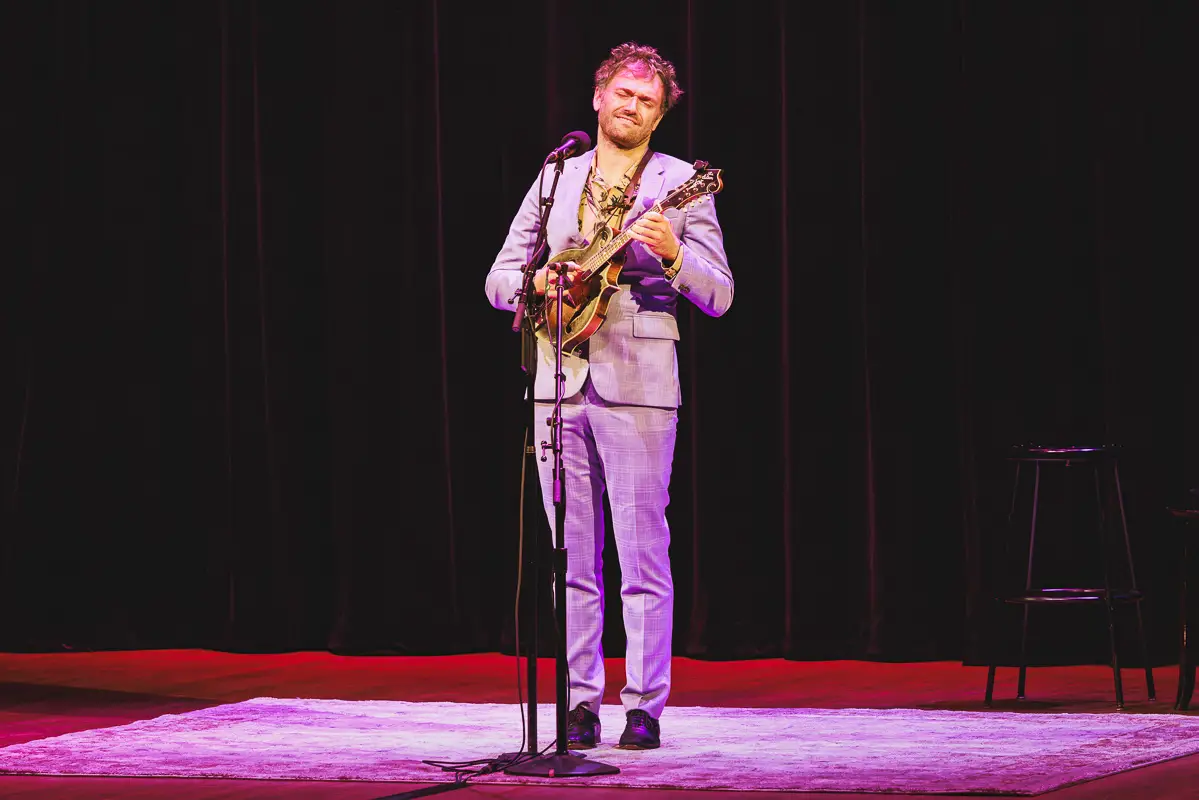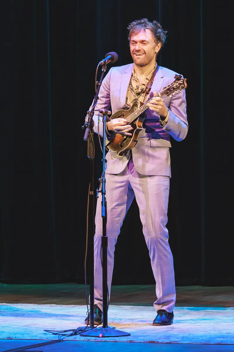 For the encore, Thile again asked the audience for requests. When a voice in the balcony called out, “Radiohead!”, he borrowed a phone for the lyrics and launched into a spirited performance of “Weird Fishes,” ending the evening on a lighter note.