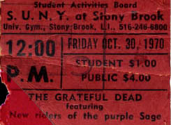 Grateful Dead SUNY Stony Brook Gymnasium – Stony Brook, NY 10/30/70