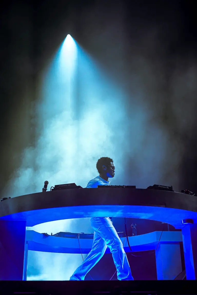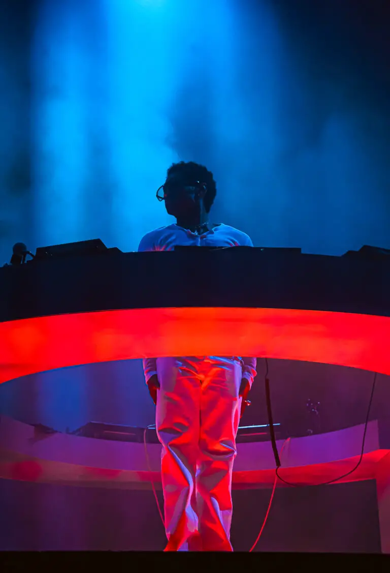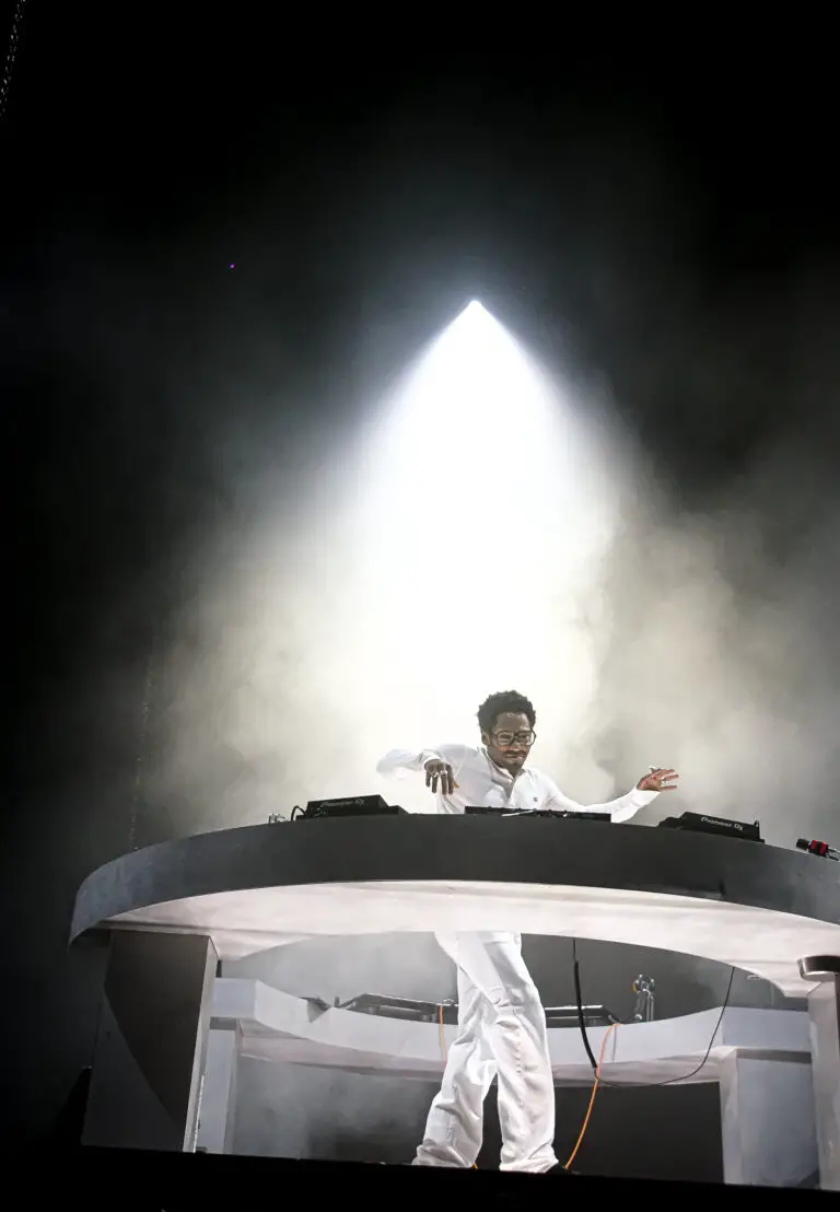When Kaytranada stepped up, he did so from a central setup, surrounded by an array of turntables and controllers, moving fluidly between his own tracks and creative edits of other artists’ work. His set pulled from his latest album era and other beloved songs, the energy was unmistakably his warm bass, chopped-up vocal hooks, vintage funk and disco inflections layered into dance-floor moments.