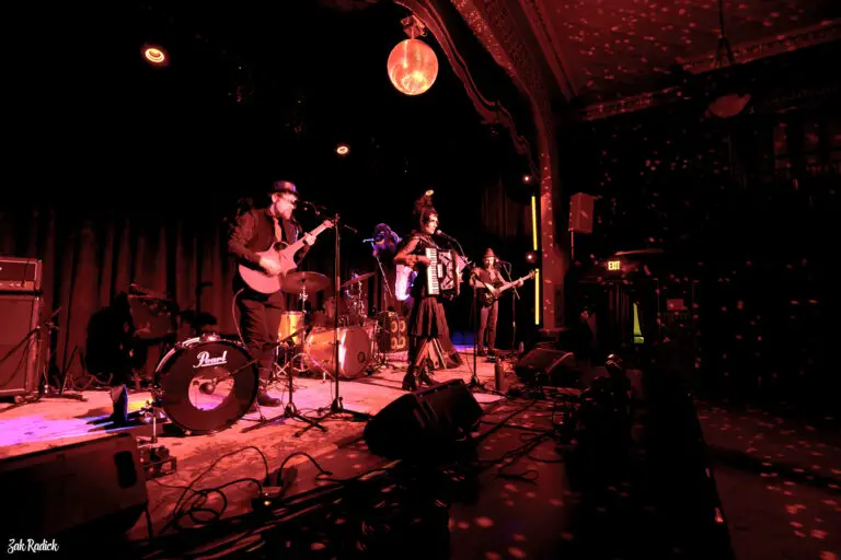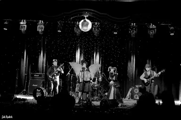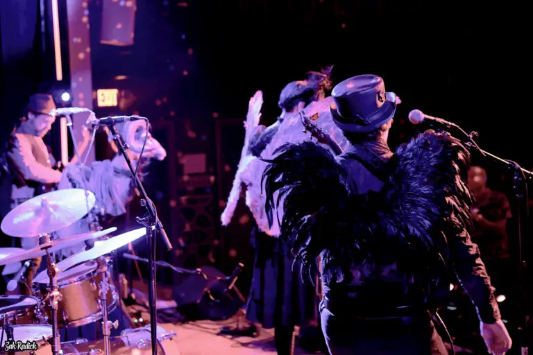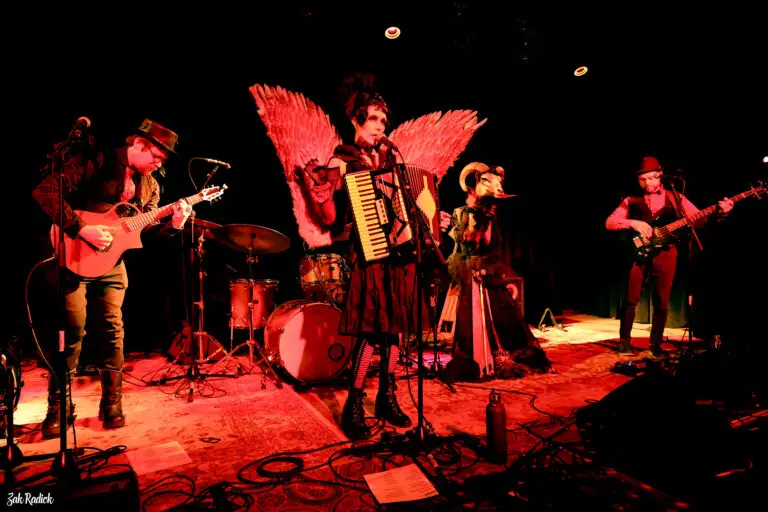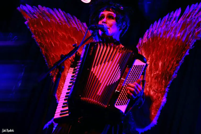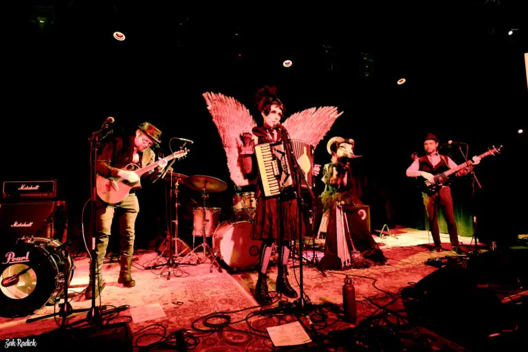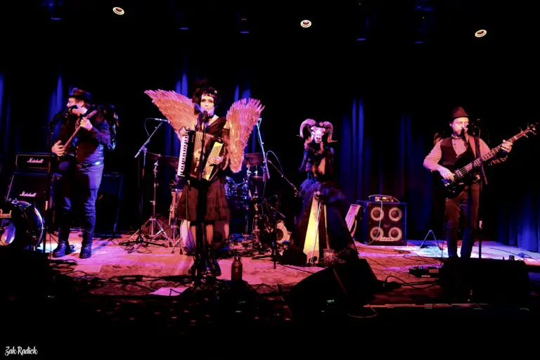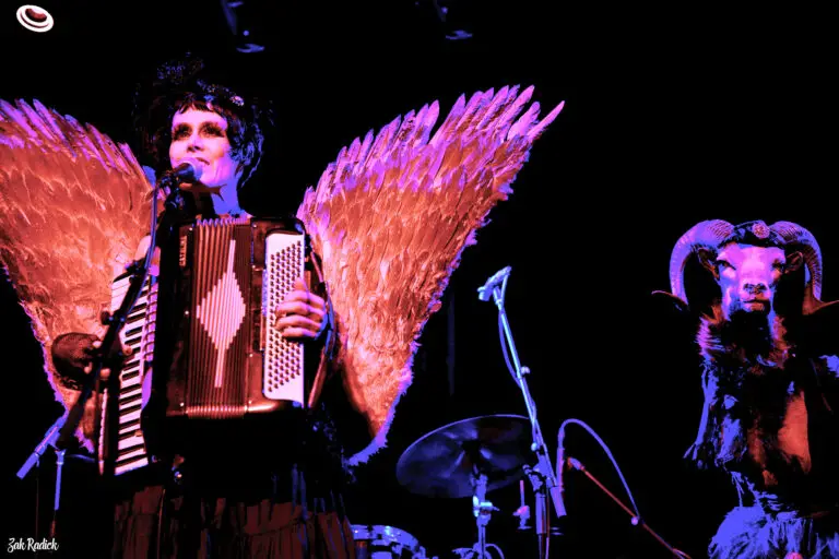 Launching into “Tooth and Claw” and “Sass,” followed by a delirious “Science!”, the band unleashed their signature sonic storm. Inspired by an eclectic mix of oddball bands like The Mother’s of Invention and Frank Zappa, System of a Down and Mr. Bungle, their recipe is a heady blend of klezmer, punk, cabaret, and pure madness. Each song was a spell of defiance and joy. Bella’s Bartok has long been the beating heart of the “foot-stomping freak-folk” world and that was especially true as tunes like “Goblin Song,” “Mountain King,” and “Satan’s Song” turned the room into a jubilant dance inferno, while “Mother” and “Mama,” dedicated tenderly to their bassist’s mom in attendance, revealed the band’s deep humanity beneath the makeup.