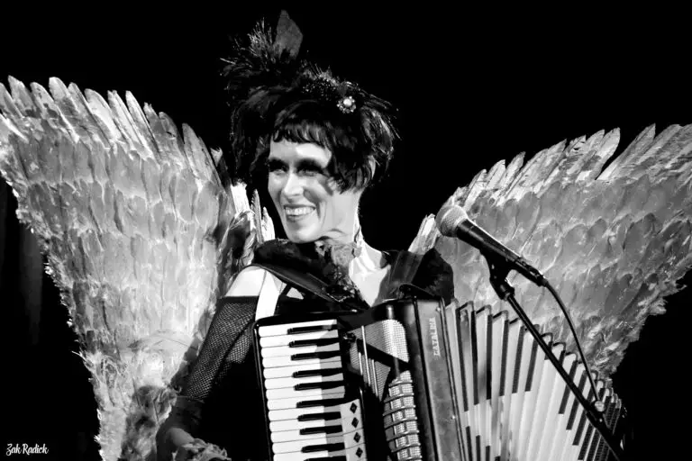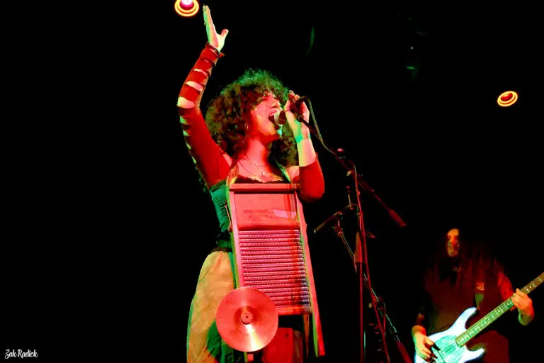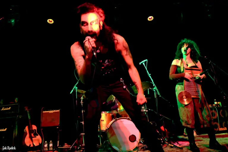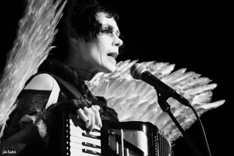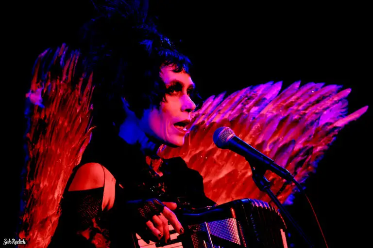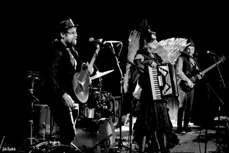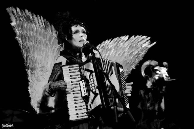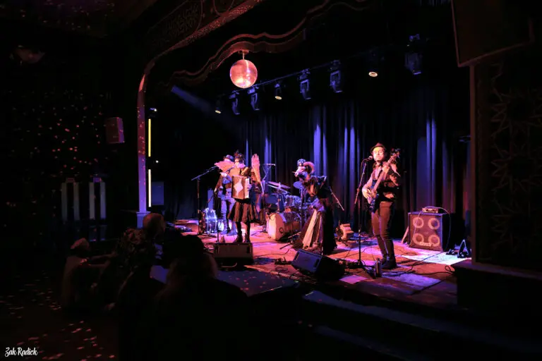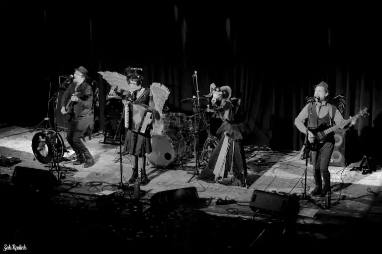 Launching into “Tooth and Claw” and “Sass,” followed by a delirious “Science!”, the band unleashed their signature sonic storm. Inspired by an eclectic mix of oddball bands like The Mother’s of Invention and Frank Zappa, System of a Down and Mr. Bungle, their recipe is a heady blend of klezmer, punk, cabaret, and pure madness. Each song was a spell of defiance and joy. Bella’s Bartok has long been the beating heart of the “foot-stomping freak-folk” world and that was especially true as tunes like “Goblin Song,” “Mountain King,” and “Satan’s Song” turned the room into a jubilant dance inferno, while “Mother” and “Mama,” dedicated tenderly to their bassist’s mom in attendance, revealed the band’s deep humanity beneath the makeup.