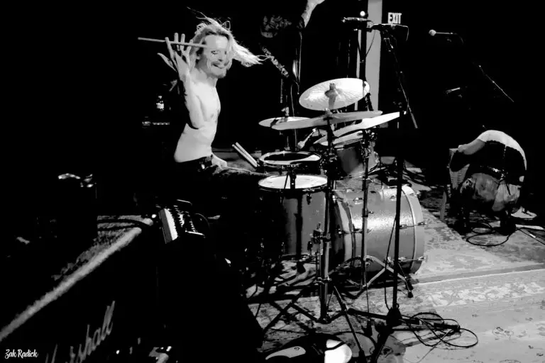 Between songs, Asher reflected fondly on the city and its revitalized venues, praising Lark Hall’s beauty and the Albany scene’s resilient weirdness before the band plunged headlong back into the frenzy with “Drown,” “Brick by Brick,” and “Fantasy.” By the time they reached their set closer “Sense,” the hall was a fevered blur of motion, a joyous rebellion against inhibition. The encore, “Aching Bones,” pushed the celebration beyond the stage as Asher leapt into the audience to dance among the very people who had given the night its heartbeat.