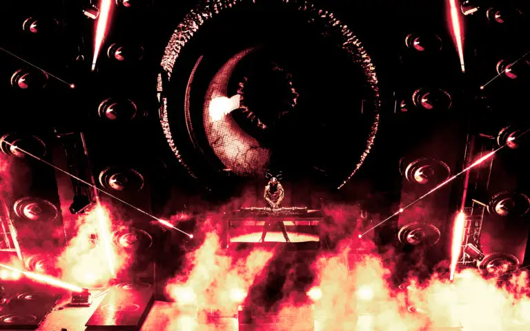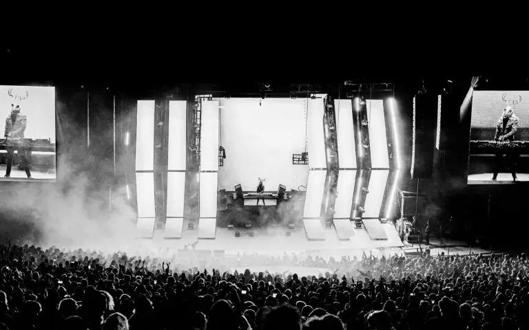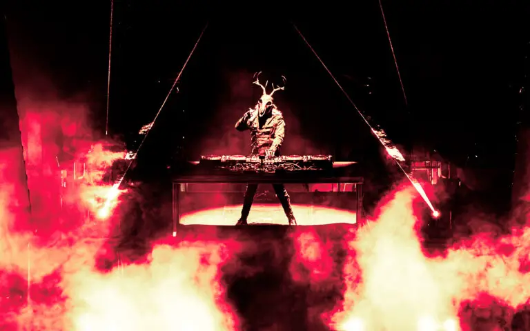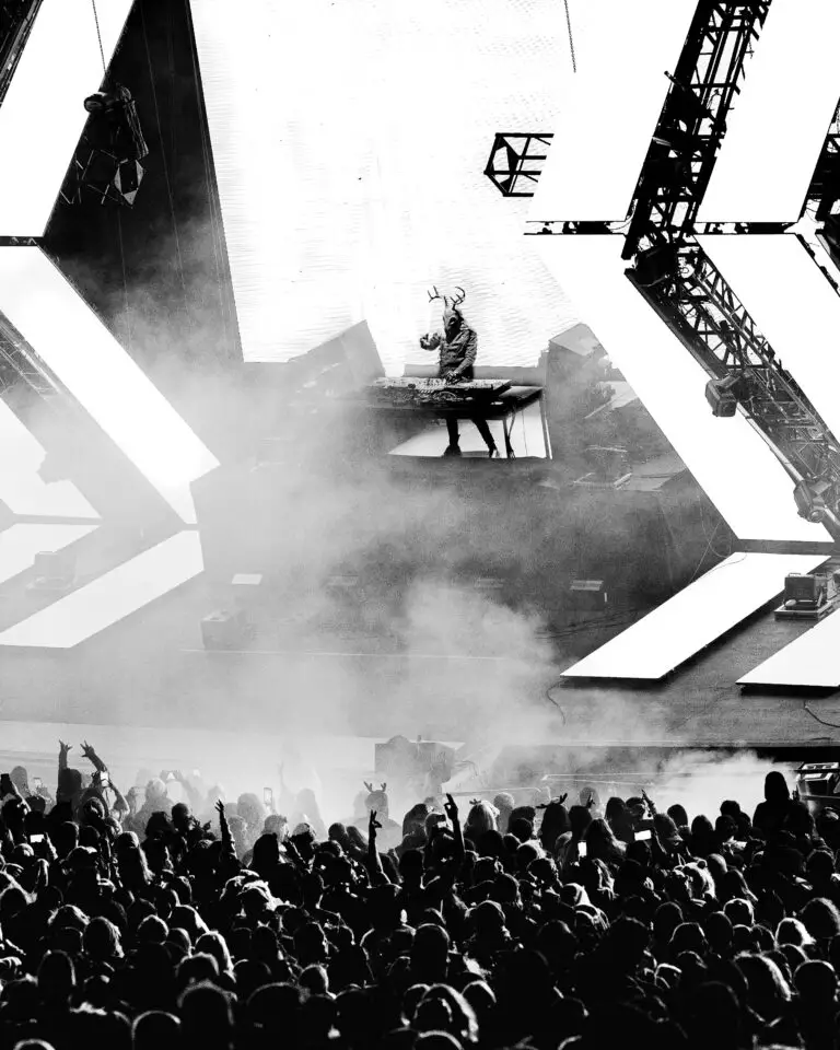 SVDDEN DEATH curated two very different sets for each night of his performances. Night one he played a VOYD set which is an iconic dark project he has been working on for the past few years. Daniel gets especially scary during his VOYD productions. He wears a deer skull mask and even flys in the air in a harness.
