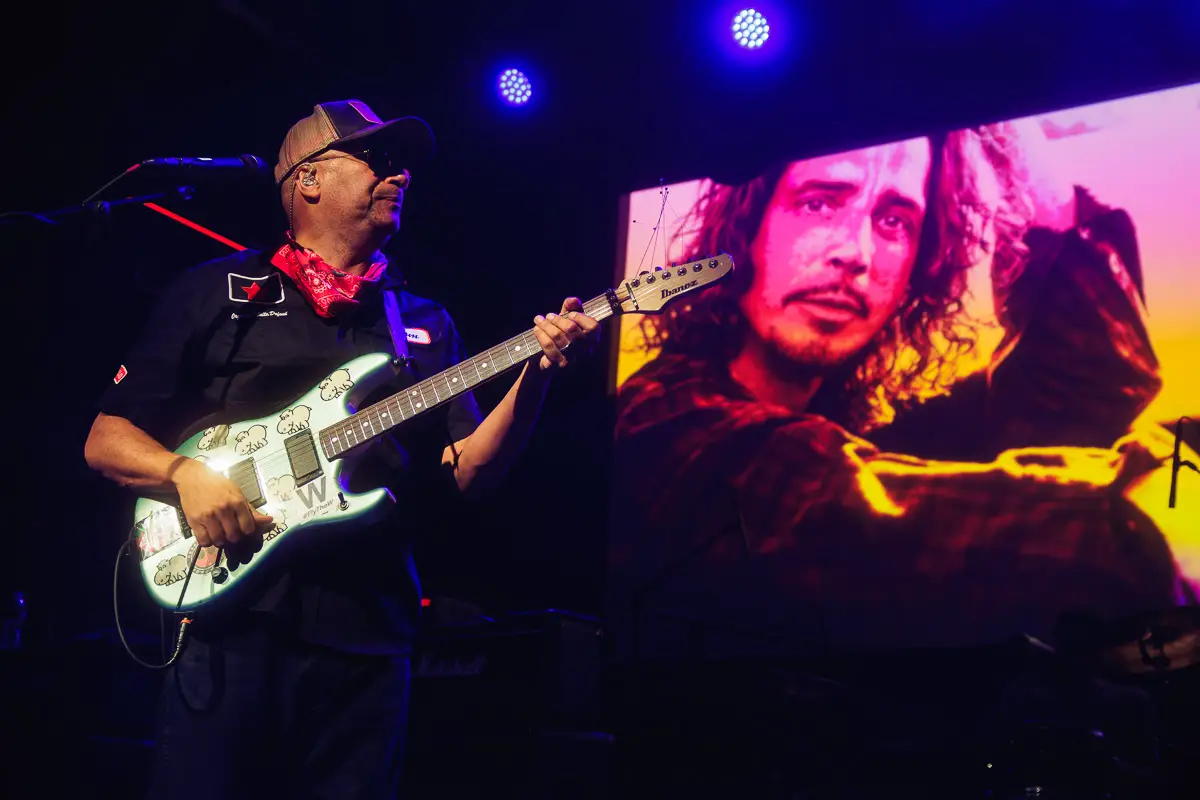 Midway through the set, while tuning his guitar, Morello urged the audience to “make more noise than Irving Plaza has ever heard,” before asking for quiet as he introduced “Garden of Gethsemane,” promising that it would be “all heavy metal for the rest of the set.” He congratulated Soundgarden on their recent induction into the Rock ‘n Roll Hall of Fame—which was met with a wave of cheers—and shared a story about visiting Chris Cornell with producer Rick Rubin, who worked with Rage Against the Machine early in their career and remained a longtime friend. Calling Cornell “one of the most beautiful and ferocious voices in all of rock music,” Morello reflected on how it was “a blessing and an honor” to make three Audioslave records with him. He recalled receiving a text from Cornell that read, “If you swallow the coin from the wishing well, your dreams will come true, in heaven or hell”—a line that inspired the song. Later in the set, he also performed Audioslave’s “Like A Stone” as a tribute to Cornell, with his image on the screen behind the stage.