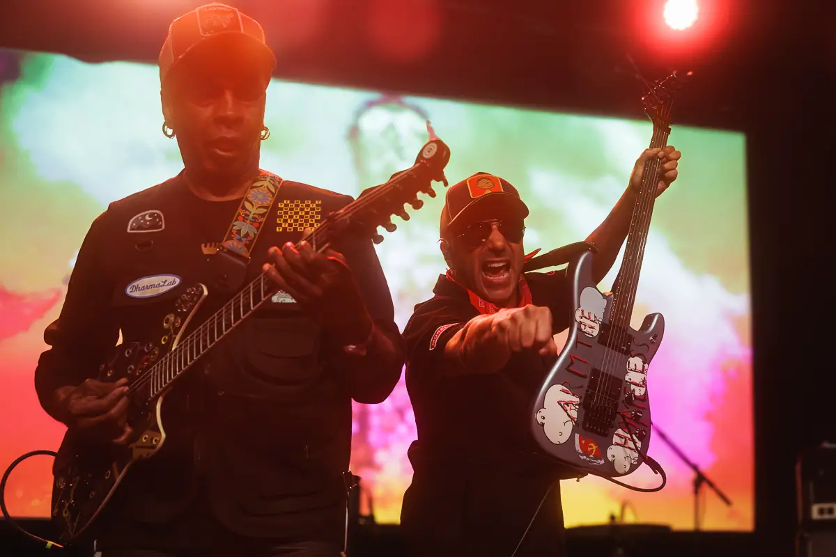 Between songs, Morello addressed the political themes that have long shaped his music, criticizing President Trump and speaking against ICE’s separation of families—an issue at the heart of “Pretend You Remember Me.” His guitars were decorated with messages including “Soul Power,” “Whatever It Takes,” “Black Spartacus,” “F— ICE,” and “Arm the Homeless.” He also recalled a show in New York in the 1990s where the venue’s janitor told him, “Your music makes me want to fight!,” a memory he shared with a laugh.