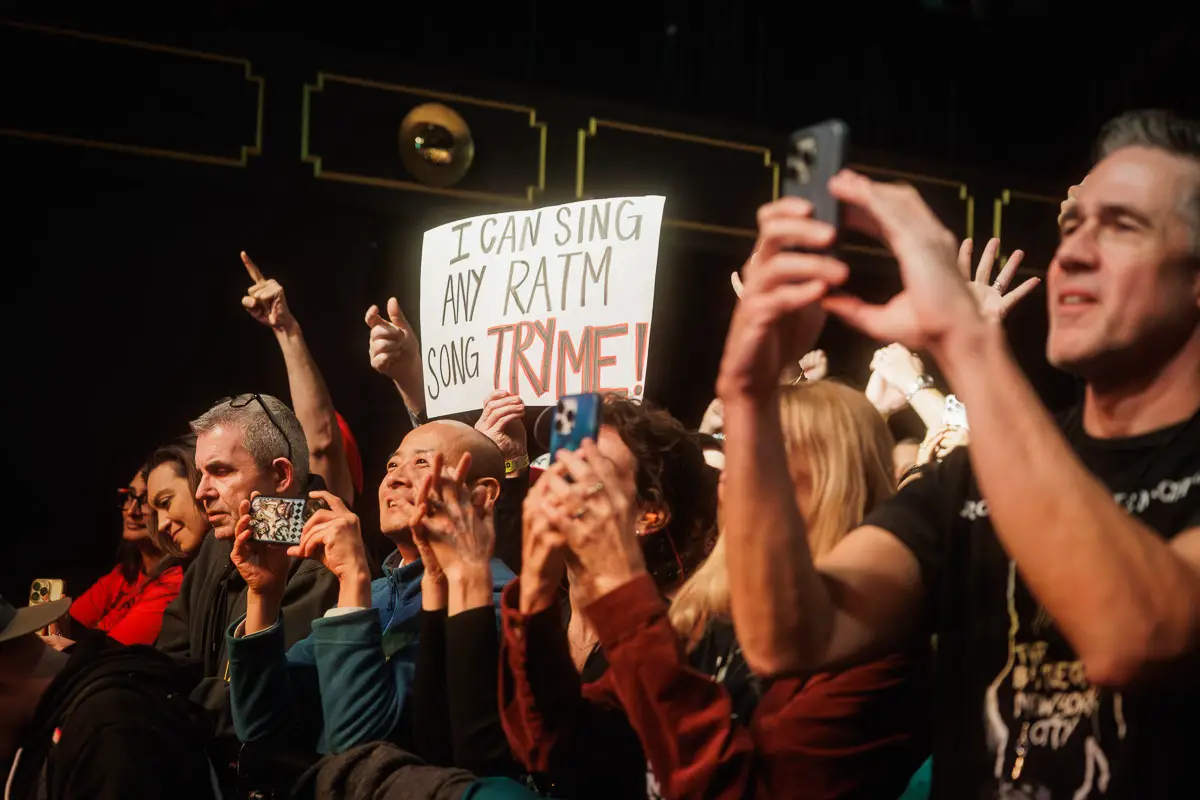 Before launching into “Killing in the Name,” Morello joked that he was about to play “a nice Frank Sinatra song,” drawing a quick laugh before the room shifted into full participation, singing along to every word.