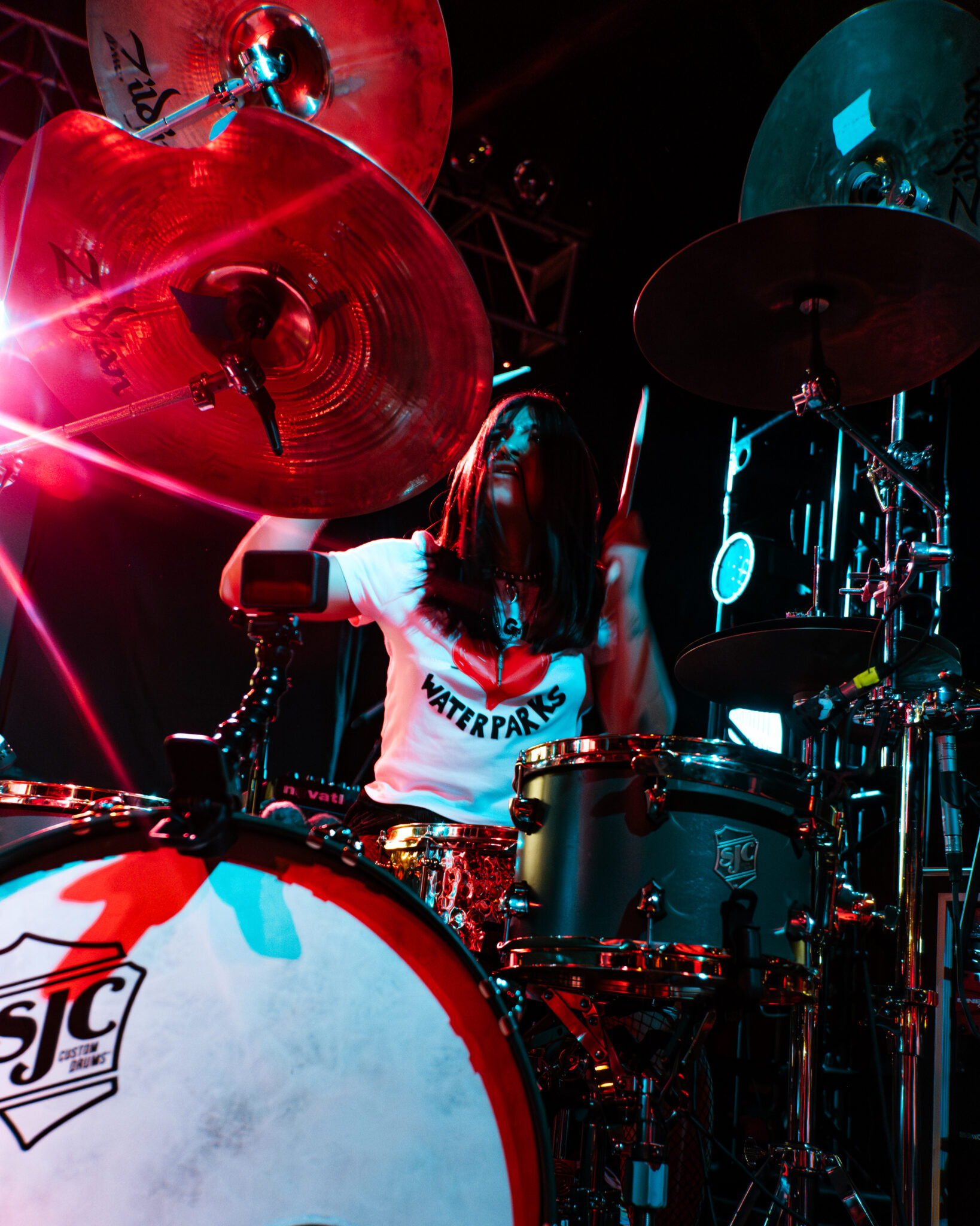 “DEBT COLLECTOR” and “FIRE4FUN” hit like theatrical punches, blending punk-rooted speed with playful vocal dramatics. The audience, a mix of longtime fans and first-timers waiting for Waterparks, quickly tuned into Jhariah’s wavelength. Even those unfamiliar with their catalog were shouting the call-and-response moments by the end of each chorus.