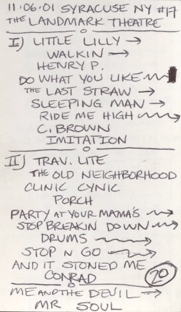 The show, held at the Landmark Theater in Syracuse on November 6, 2001, was only the band’s second show in the Salt City, having performed in 1992 on a H.O.R.D.E. Tour stop at the State Fairgrounds.