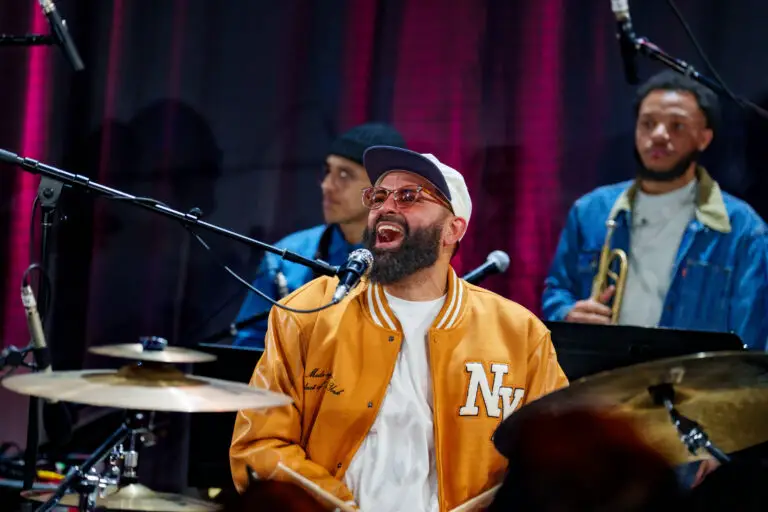 At the same time as Maria Mazzotta, David Rivera & La Bámbula were up in the Grand Promenade. In the most challenging acoustic space of the night, the Latin Jazz and Bomba big band was in front of a shoulder-to-shoulder packed crowd. Playing through a repertoire of jazz, bachata, salsa, and Bomba, the band got the crowd dancing with powerful polyrhythms and solos from across the horn, rhythm, and vocal sections. Citing the current political crisis in the United States, Rivera said, “In tough times like this, music does what it does best [unites us].” The crowd responded by dancing even harder in a rebellious celebration of joy.