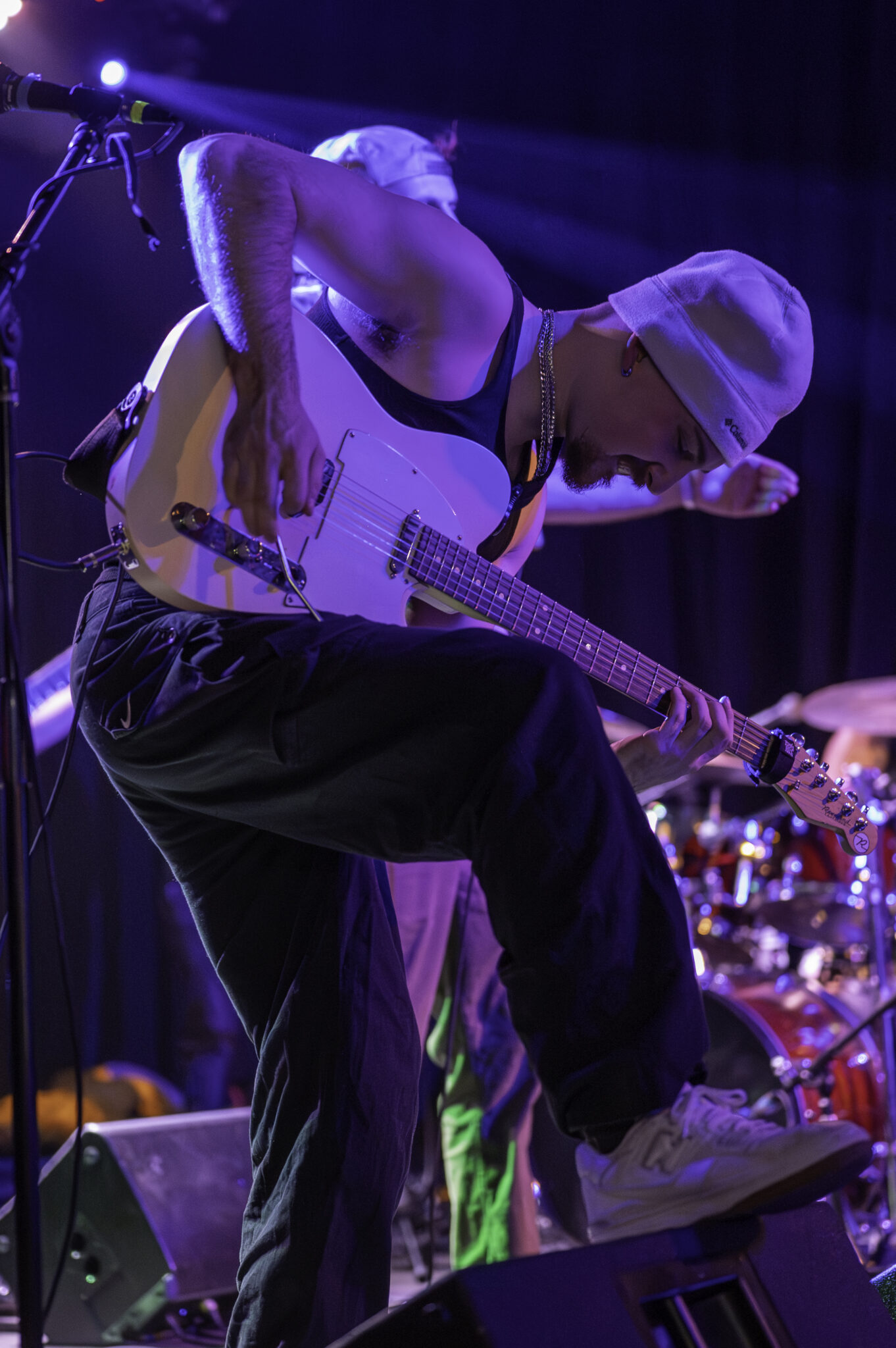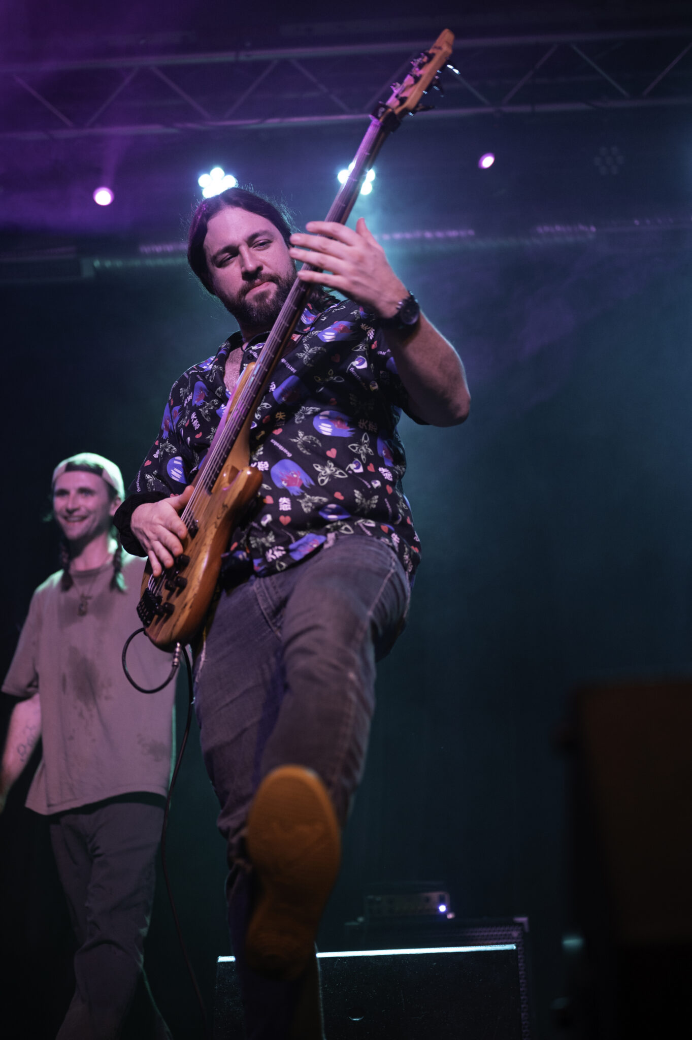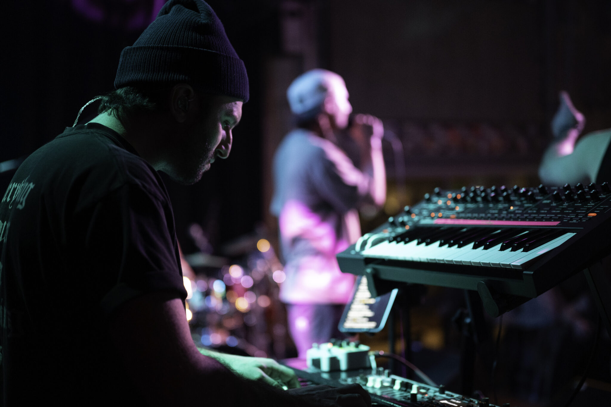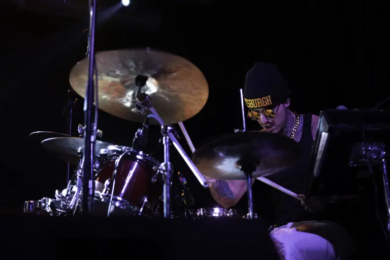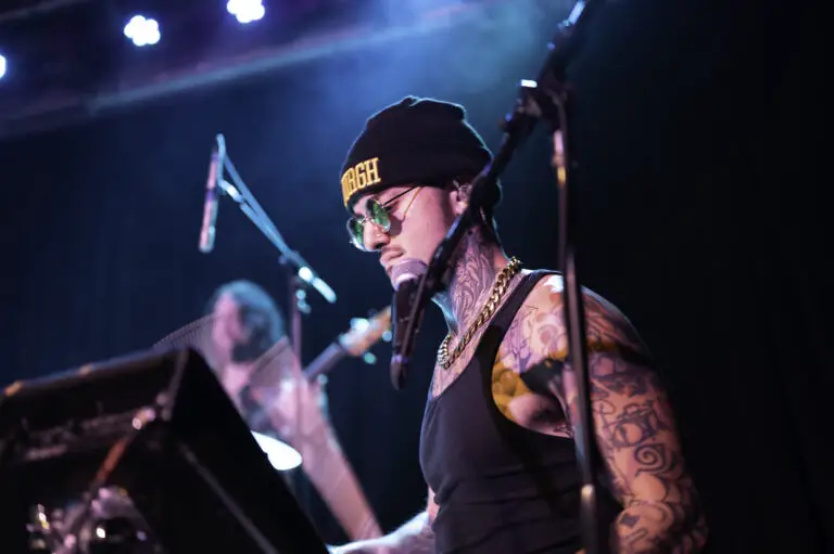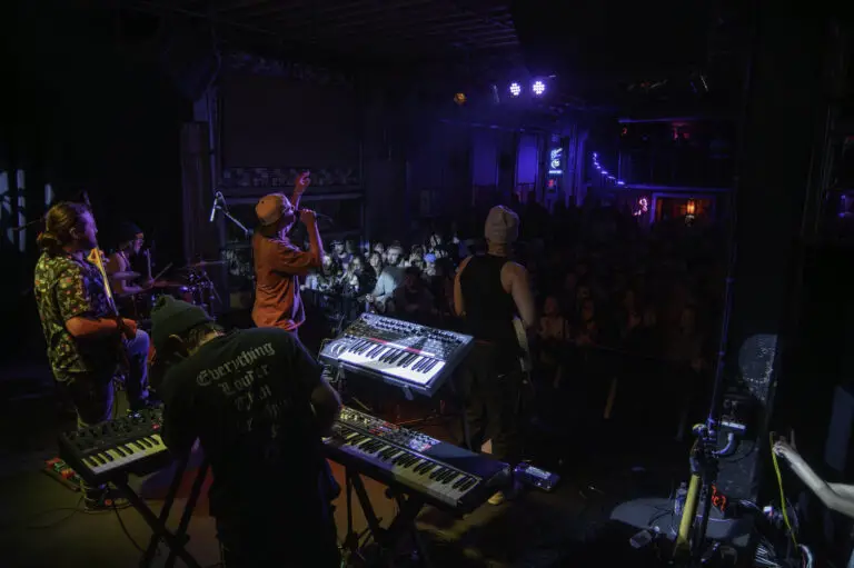 After getting everyone in the mood for some Hip-Hop, Come Back to Earth came to the stage lead by drummer and musical director, Marco Cirigliano, and one by one the band took their places, Marco on drums and vocals, Ryan Bauer on guitar and vocals, Ben Chillbert on the bass and Jesse Clinton on the synth, and Noah Fense as emcee. They started the show in epic fashion, having the entire venue sing “Happy Birthday” to Mac Miller, who would have been 34 on Monday the 19 after his death in 2018, this lead right into “Happy Birthday” by Mac Miller off of the Faces album, and leading head-on into the entirety of Mac’s discography, and its extensive, playing songs from early albums like Best Day Ever all the way to “Diablo” off of the Faces album.