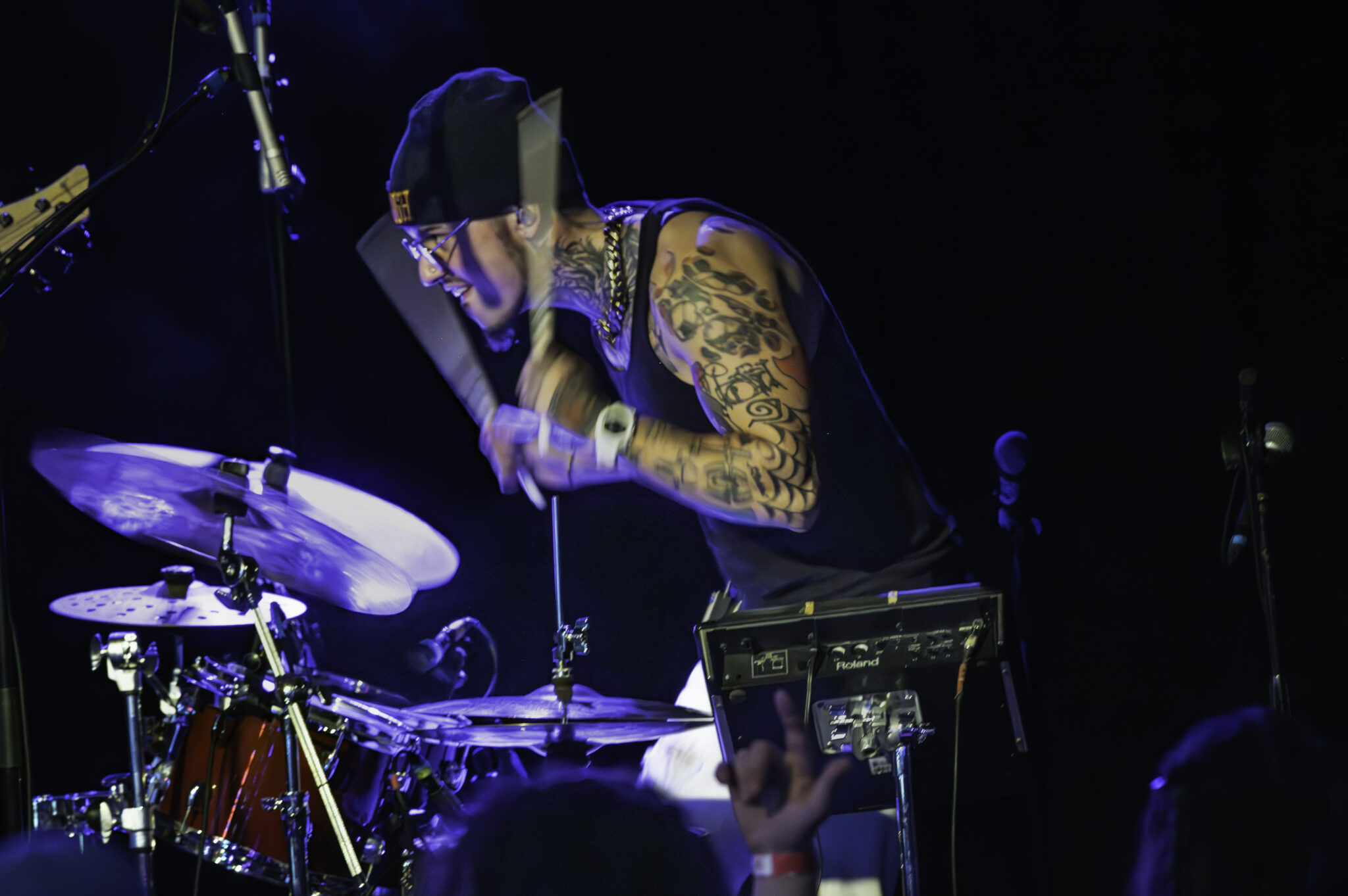 The band seemed at one with the crowd the way they interacted, many times Noah Fense reaching into the crowd to show his love and appreciation and to include them in his performance. If you were to have wandered in thinking “Oh great some rap songs,” you would be sadly mistaken as the room was filled with celebrity style drum solos that would make rock fans cry, guitar solos from Ryan that would have impressed even the untrained ears of newcomers, some on the most difficult and incredible synth work coming from Jesse, when he only had three day to learn it.