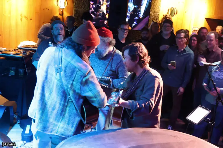 The lineup was staggering: God Street Wine’s Aaron Lieberman, harpist Mikaela Davis, John Lee Shannon of Circles Around the Sun, Josh Kaufman of Bonny Light Horseman, alongside Sam Cohen and Chris Maxwell. No rehearsals. No setlists. Just world-class musicians huddled together, deciding on the fly which songs felt right in the moment. They listened deeply to one another and let the songs choose them in real time.