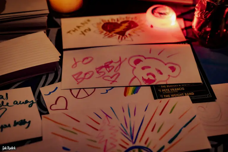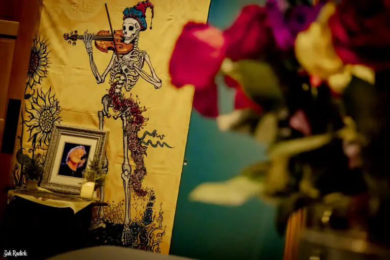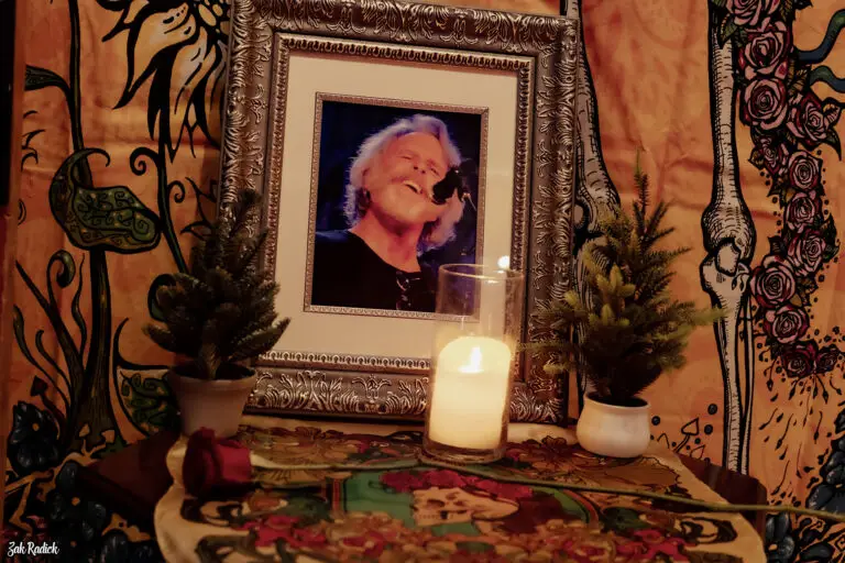 Those same words appeared outside in the lobby, where a makeshift memorial invited fans to leave handwritten notes for Bobby. Donations were encouraged for HeadCount, the voter-registration nonprofit long intertwined with the Dead’s legacy. Back inside, The Deadbeats powered through “Throwing Stones,” “When I Paint My Masterpiece,” and a rousing “Turn On Your Love Light.” Having seen them many times around Albany, I’m not sure I’ve ever heard them sound better.