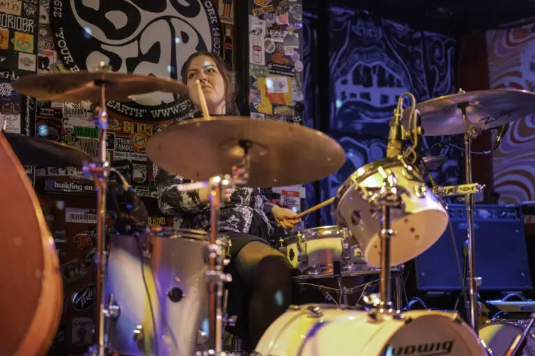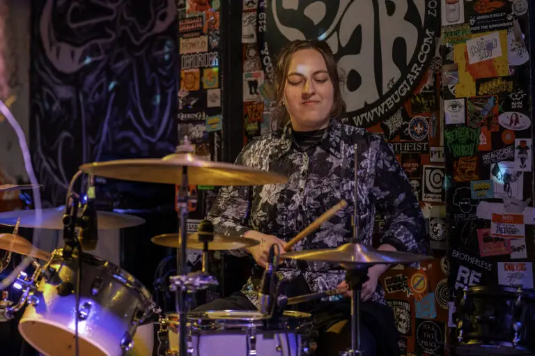 The small venue on Monroe Ave and the heart of downtown, hosted three local bands on Friday, January 23; Phone Call, best known for their EP release in 2022 Close Call, took the opening slot as it was a special night. A brother and sister combo on the traditional bass and drums welcomed their father and celebrated his birthday at the show, and there was a sizable “Happy Birthday” that resounded from the crowd.